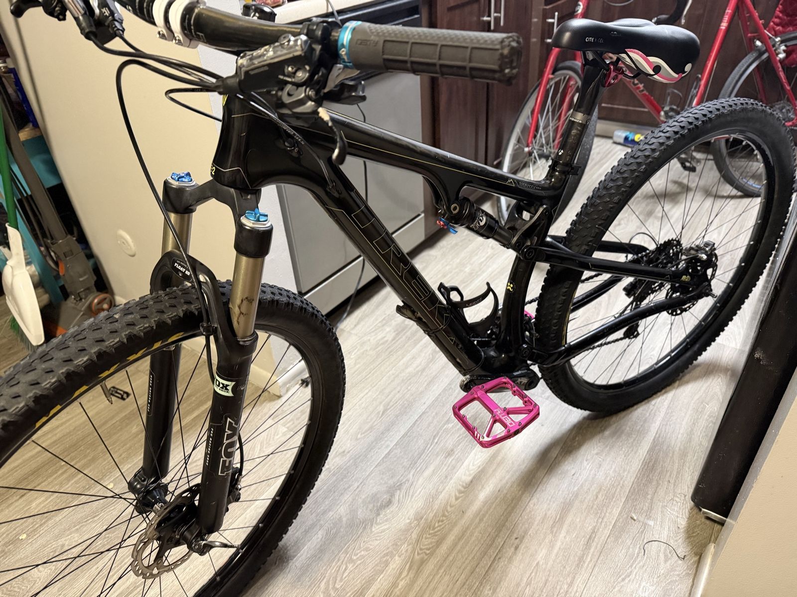 ZelleI have a custom trek bicycle Superfly/100 with maxxis tires. 32 fox racing shocks, Float 29. Shimario brake assembly, deore xt deity pedals, G2 geometry. clean serial number