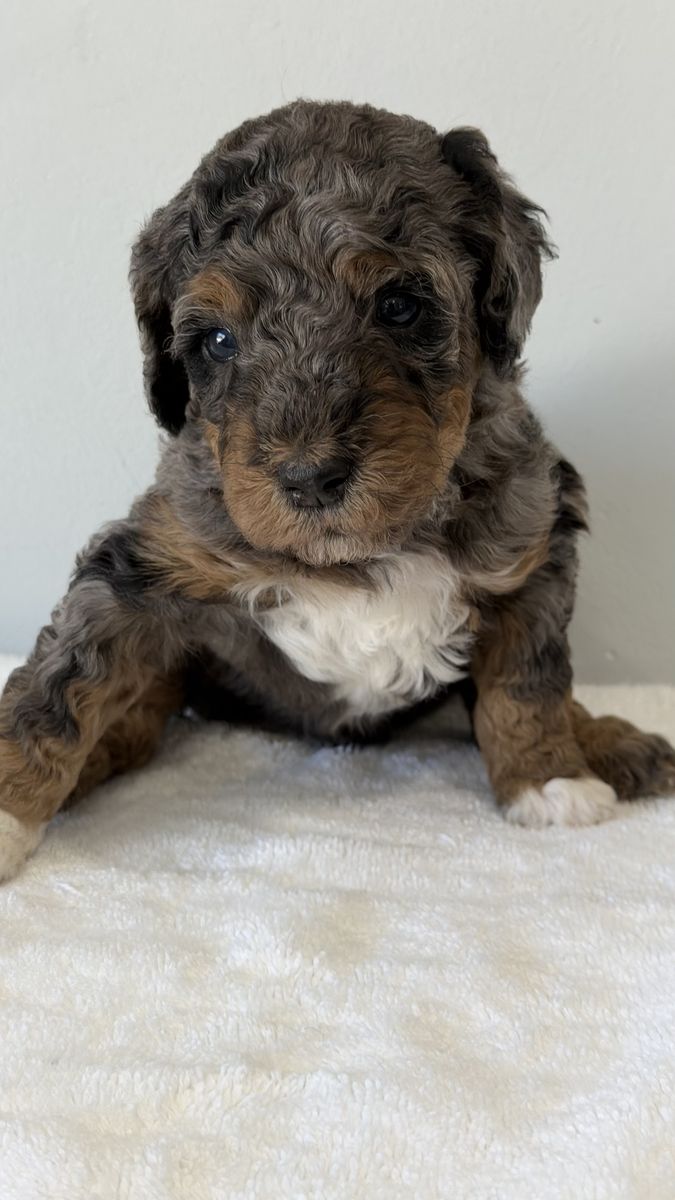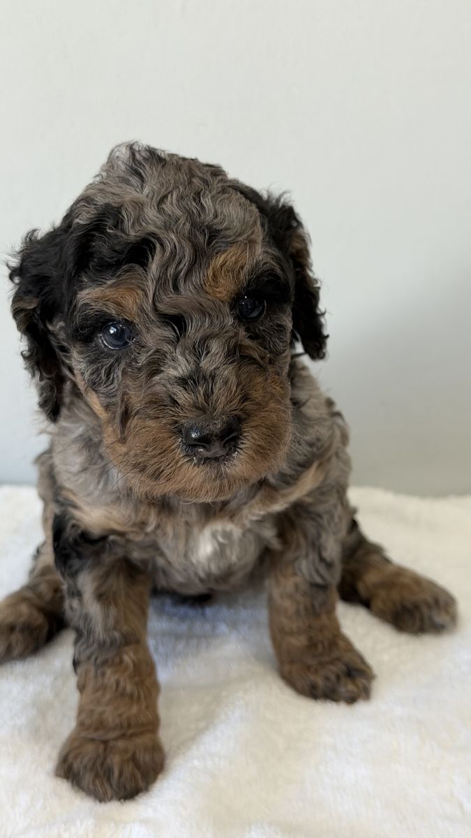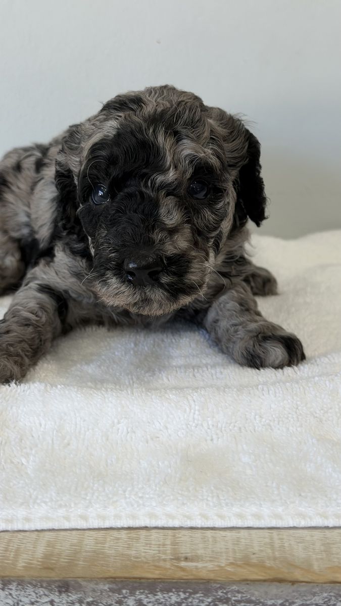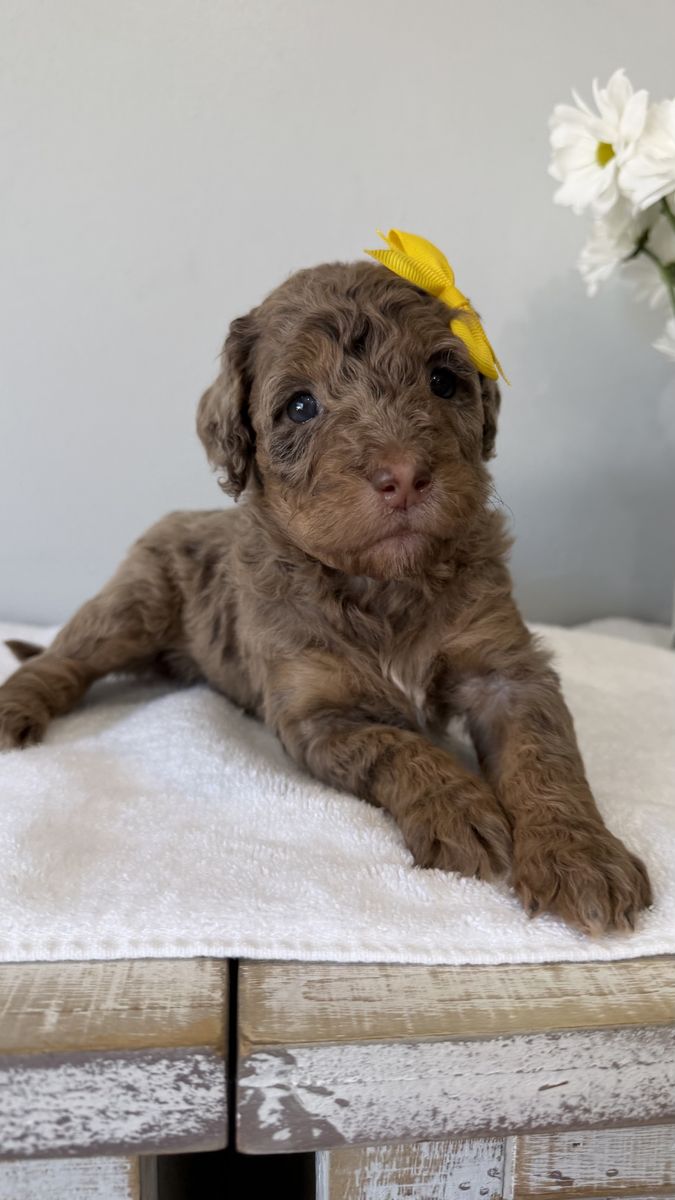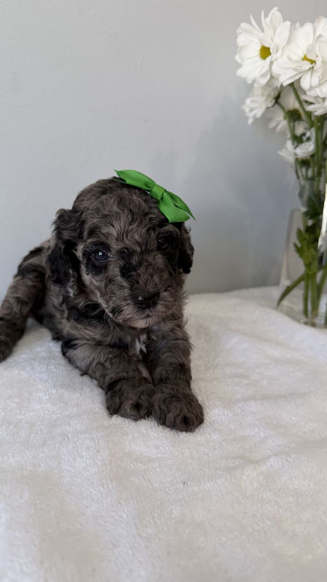 ApplePayOMGosh!!!! These hypoallergenic babes are so CUTE!!! They are mini so they will be around 30 lbs. Their disposition is wonderful. We have 4 girls and 4 boys. Parents have genetic testing and are super healthy. They will come with their first set of vaccines and a puppy tote with fun stuff to get you started. They have been in finishing school for the last four weeks getting introduced to different touch, sounds, tractors, farm animals, children, nail trimming, car rides etc. They will be well rounded when you take one home. Call with any questions. Jennifer