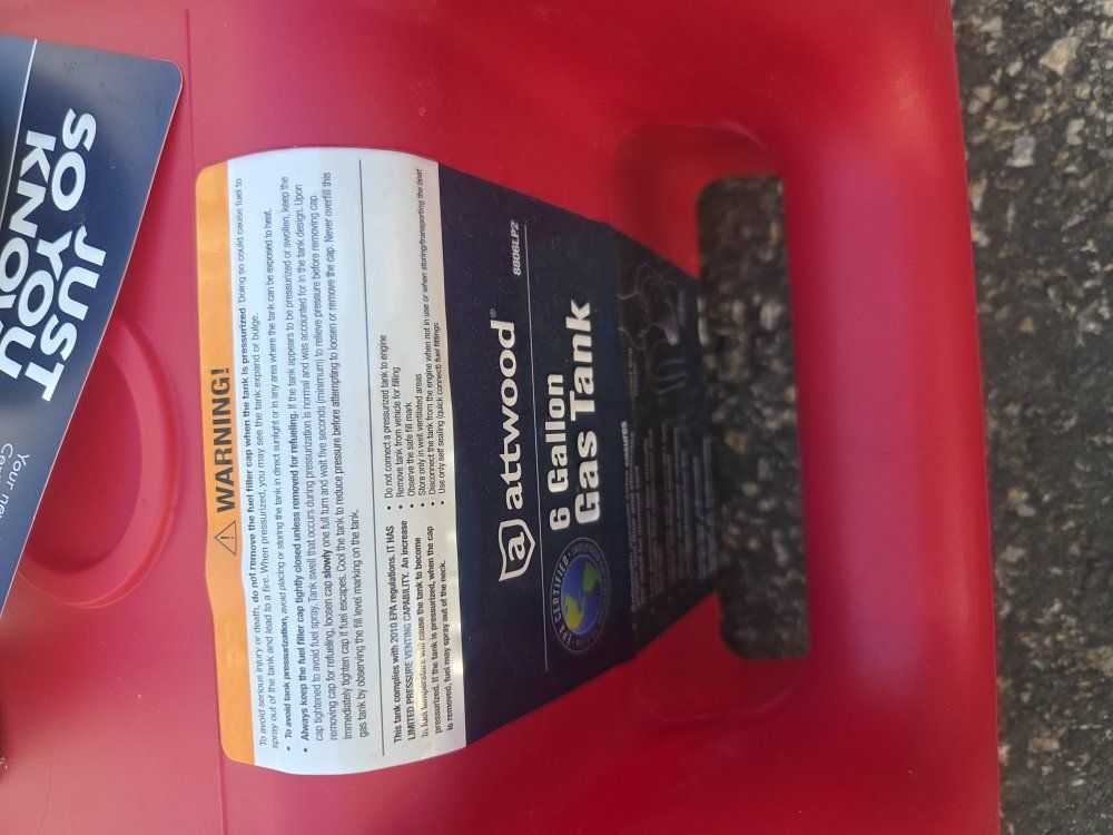 Attwood 6-gallon red portable fuel tank. great for boats, outboards, or backup use. EPA/CARB compliant with automatic venting. Solid shape with no cracks or leaks. Ready to go!