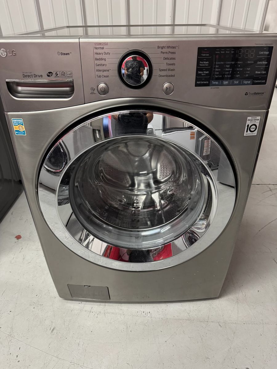 Lg Steam washer 4.5 cu ft inverter direct HE energy star turbo wash stainless steel drum heavy duty bedding steam sanitary steam allergiene tub clean speed wash downloaded steam fresh care prewash remote start delay wash WiFi add item extra rinse rinse plus spin etc.. Works great, clean, 45 day warranty, delivery/install available