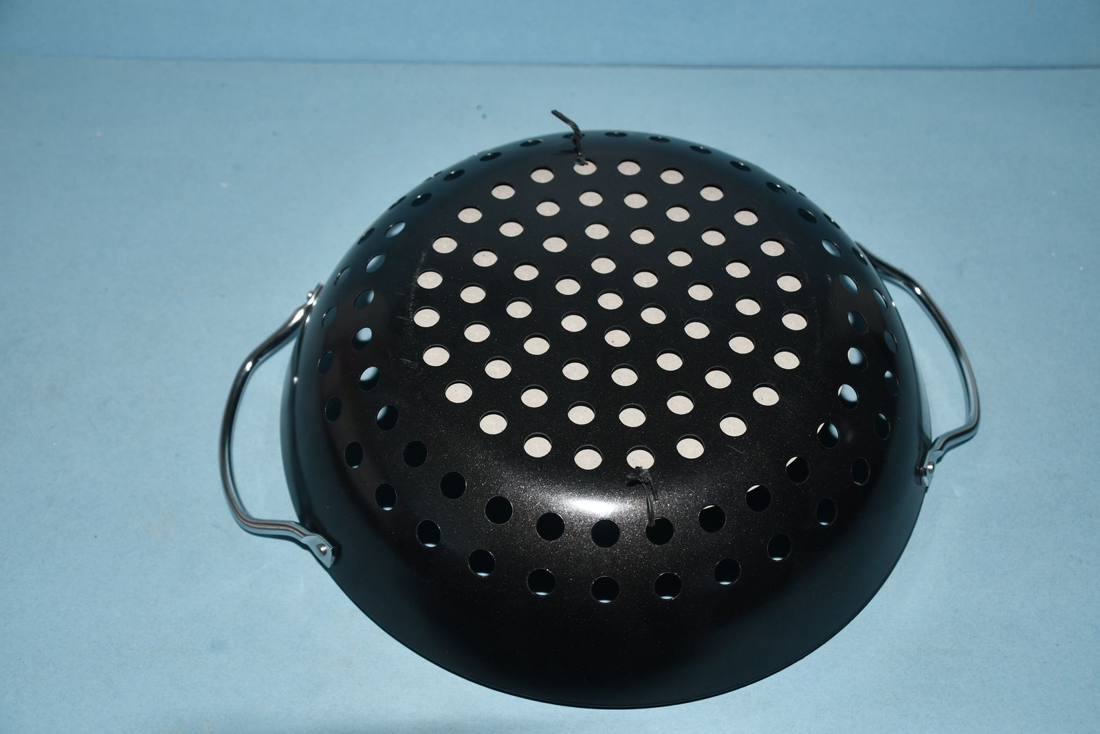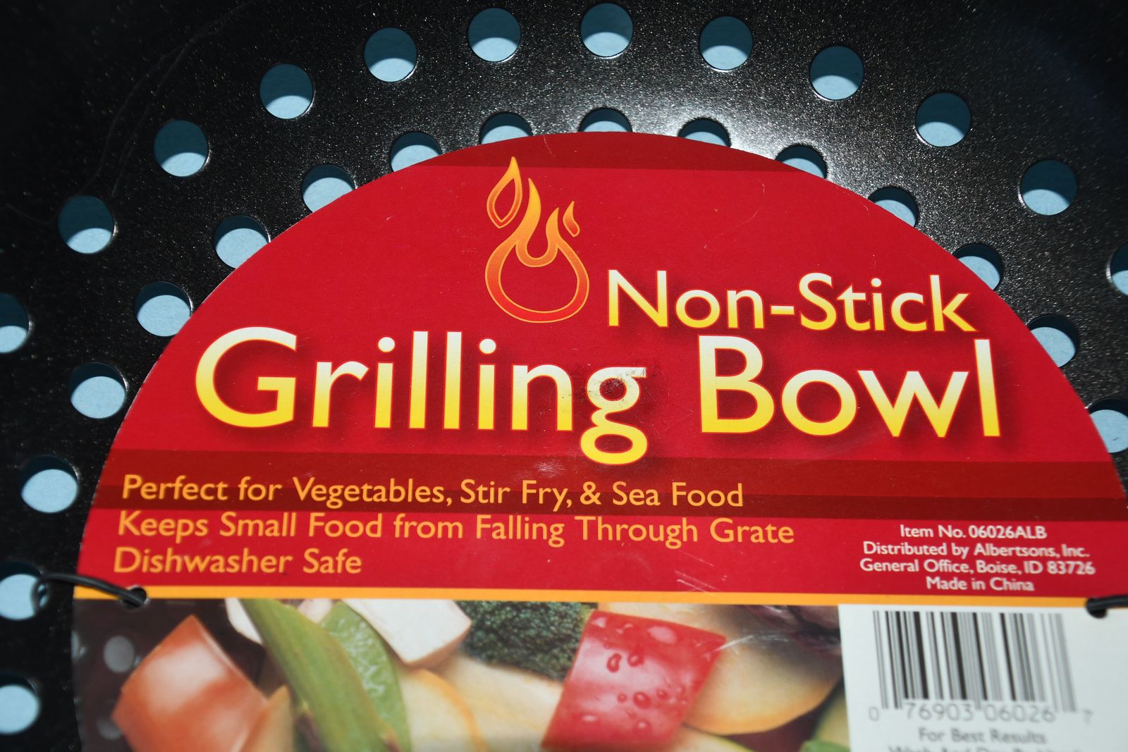 This NEW BBQ GRILLING BOWL is about 11" in diameter. It has 2 HANDLES. It is NON STICK. Our home is smoke free. Questions??? Please ask. We are located in Plain City. Cash only please.