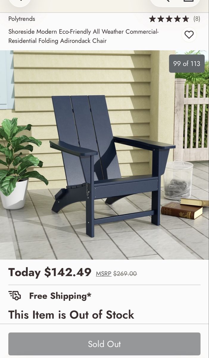 Create a relaxing refuge that you and your loved ones can enjoy season after season by placing a few of these Adirondack chairs on your deck, patio, or around a firepit. With a modern back style and sleek leg profile, this modern Adirondack chair is the perfect blend of style and comfort. This chair is durable, attractive, and foldable so that you can use it when you need to and store it when you don’t. Constructed from all-weather, UV-resistant HDPE polyethylene, it defies the elements and remains easy to clean.