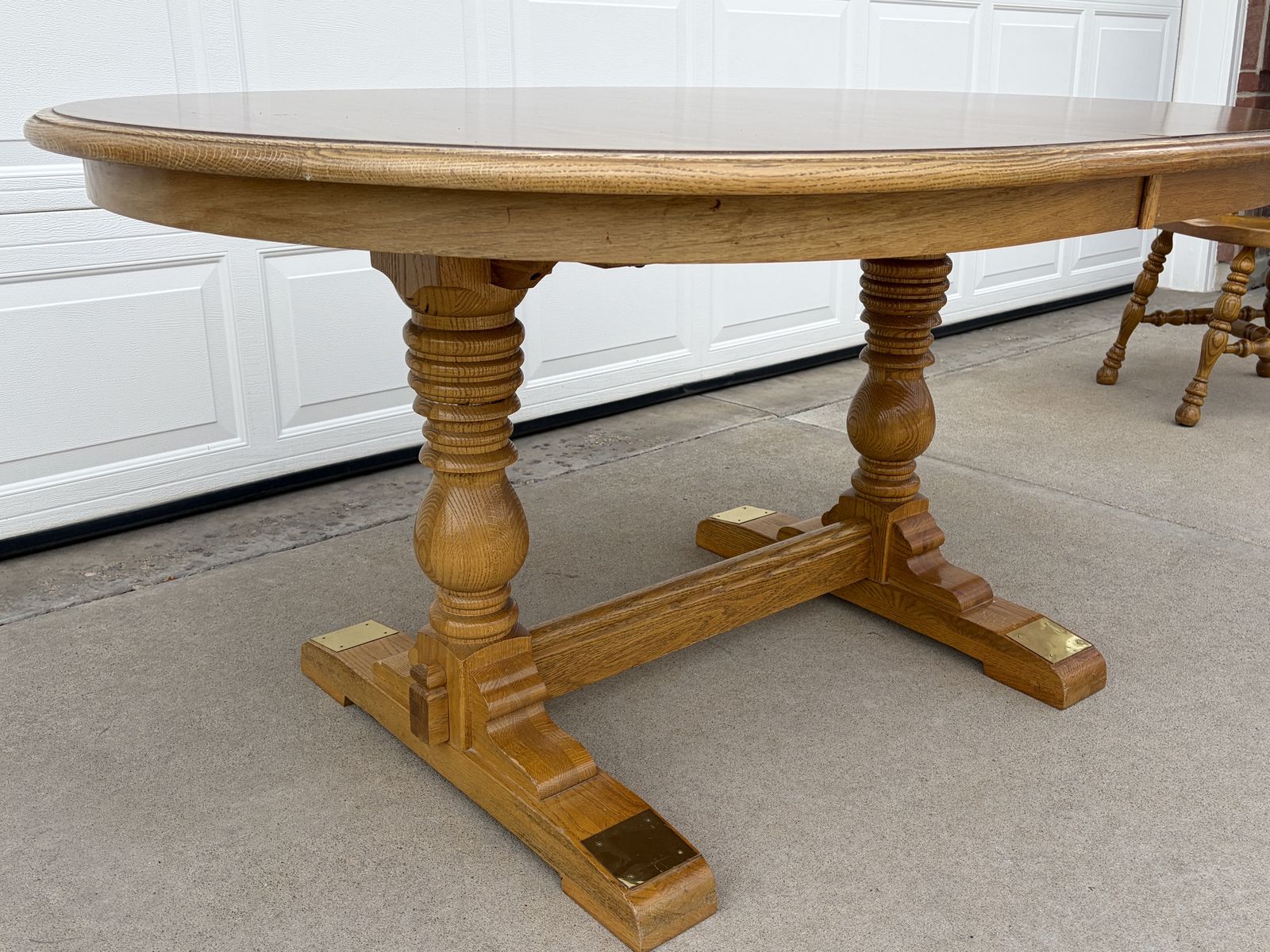 ZelleCochrane Oak double pedestal Dining Table set with 8 Windsor chairs