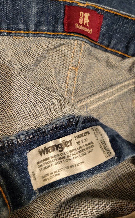 Wrangler brand ~ Size 38W x 32L ~ relaxed fit ~ straight leg ~ like new condition ~ washed & stored but never worn.