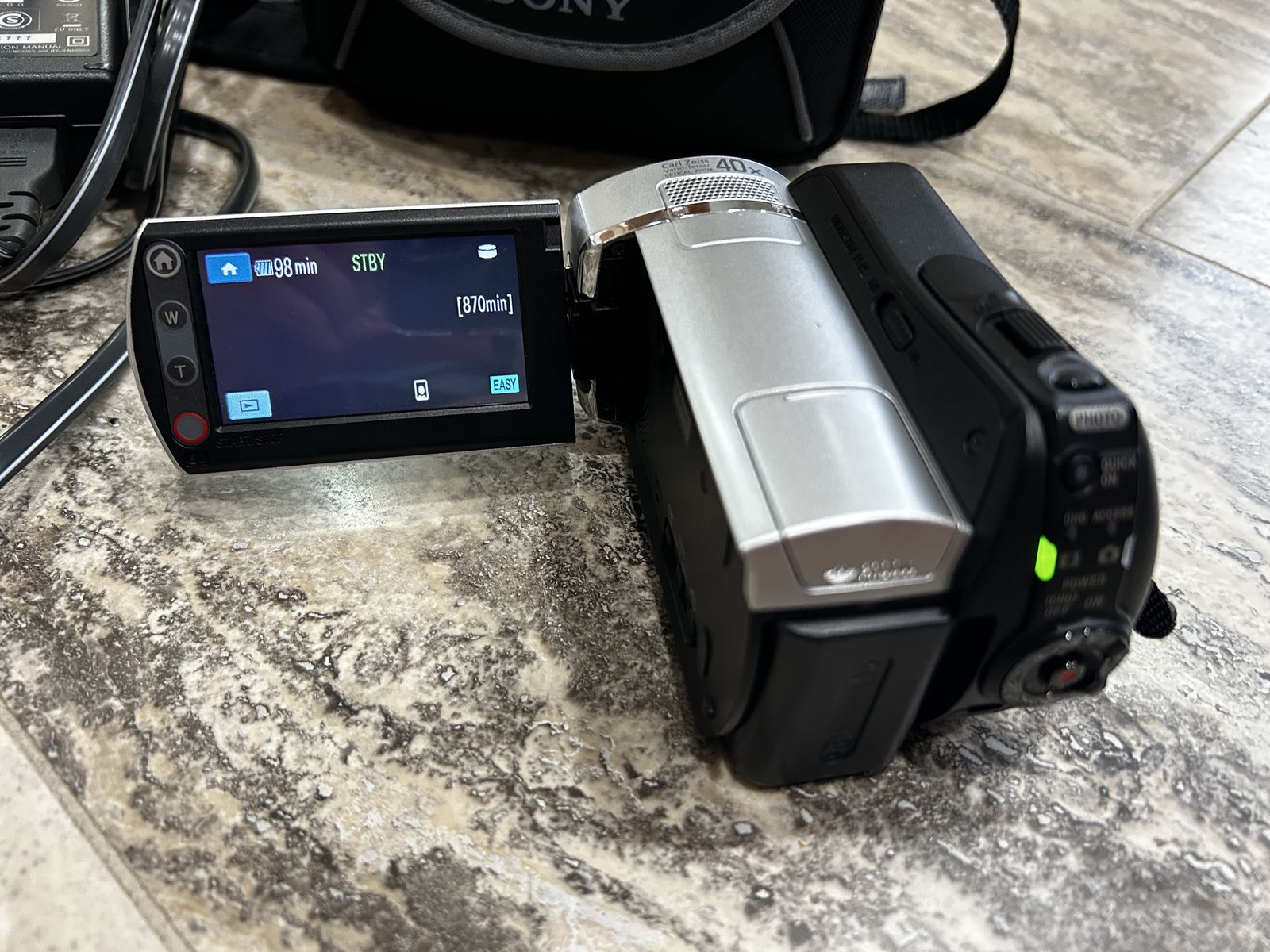 VenmoThe Sony DCR-SR46 is a 40GB hard disk drive (HDD) standard-definition camcorder released around 2008, known for its compact size, 40x Carl Zeiss optical zoom, and nostalgic 2000s-era "handycam" video quality. It features a 2.7-inch touchscreen, Electronic SteadyShot, and records to both the internal HDD or Memory Stick Pro Duo.