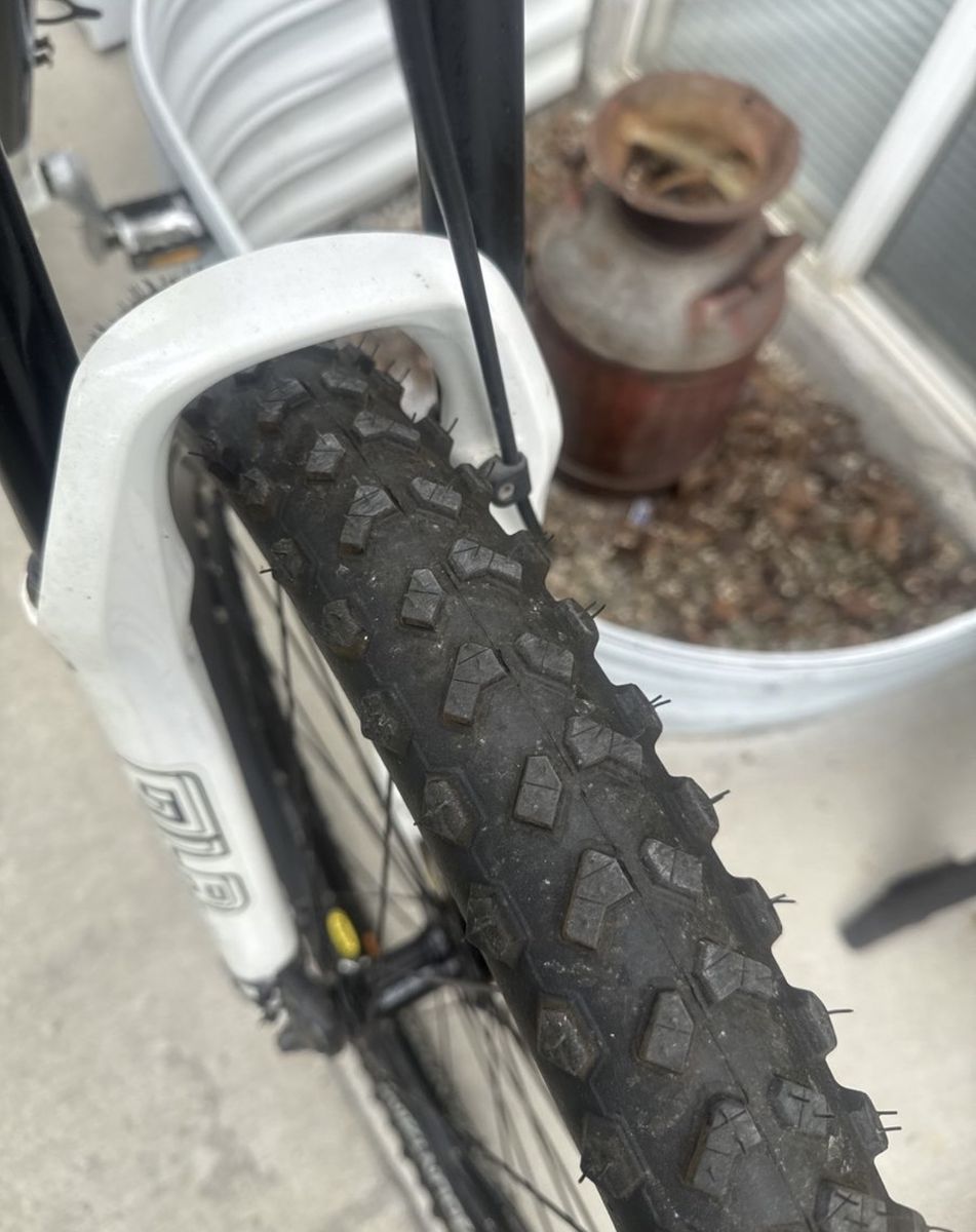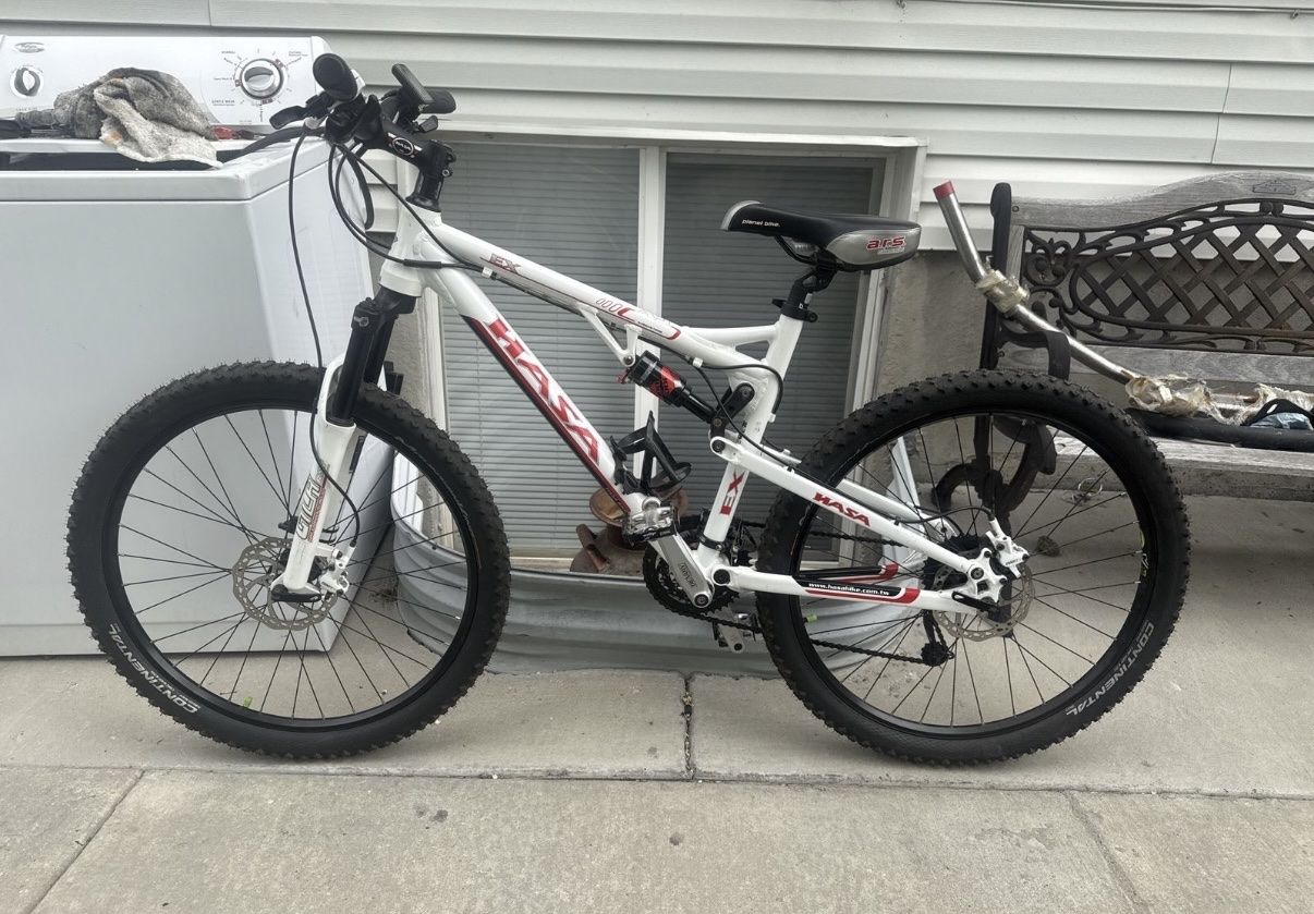 This Bike is still in excellent condition still in excellent shape , both tires hold air , tire treads are still new brought them new last year , just the tires alone were $100 Pedals are good , chain is good. Seat is good. Handlebars are good. Aluminum frame is still solid has no cracks 9x3 , 27 speed , both suspension works great & rides smooth,