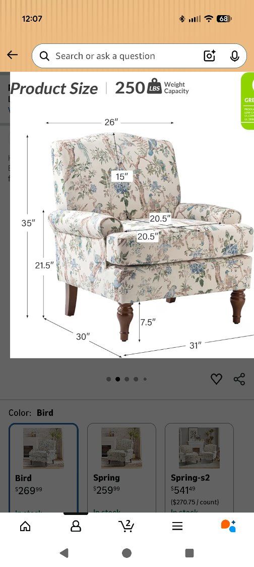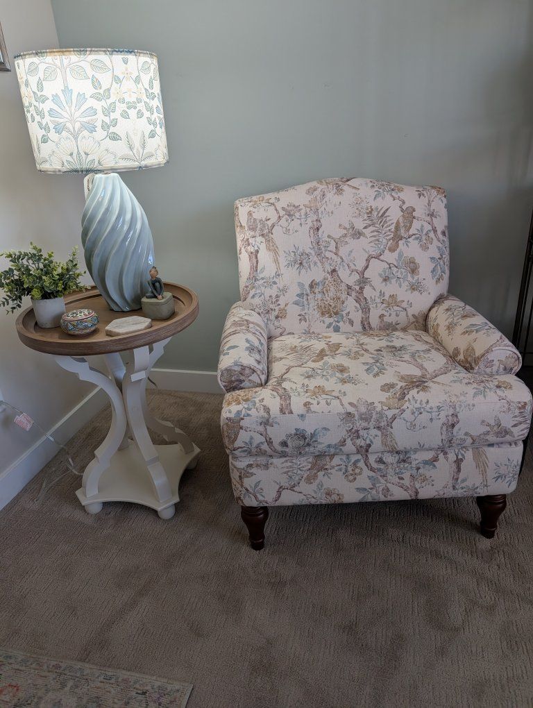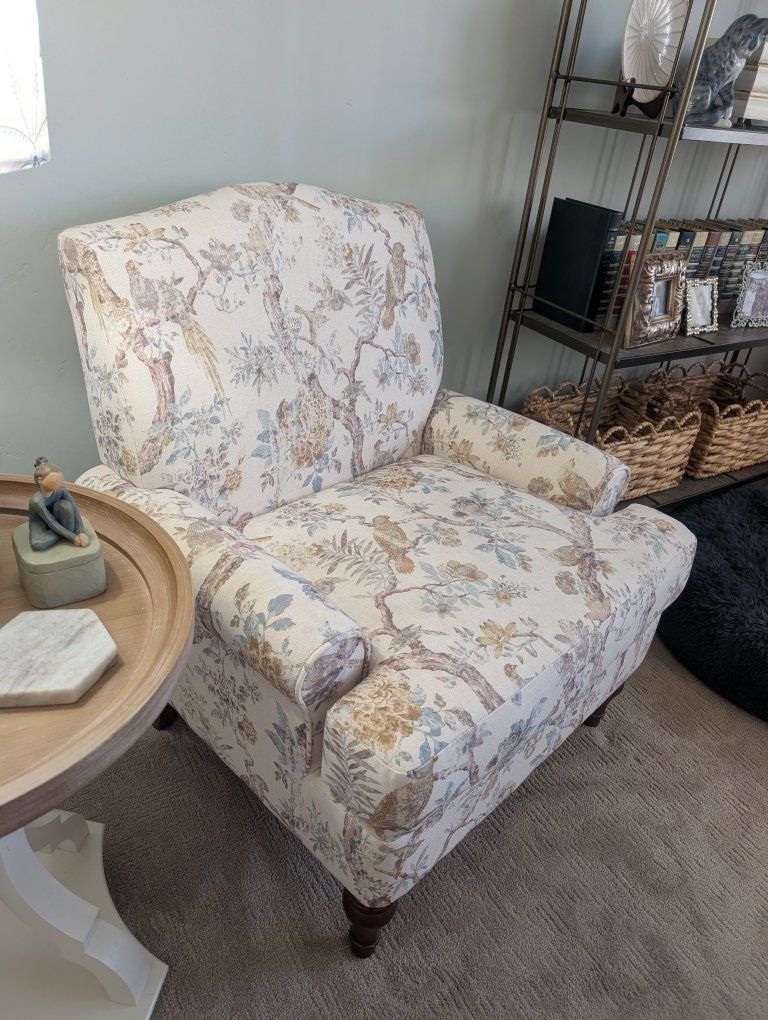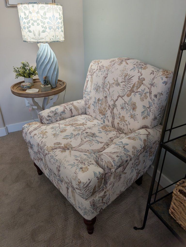 Adorable accent Chair. Cream. light blue and yellow with birds. Brand New. Firm Cushion. $199