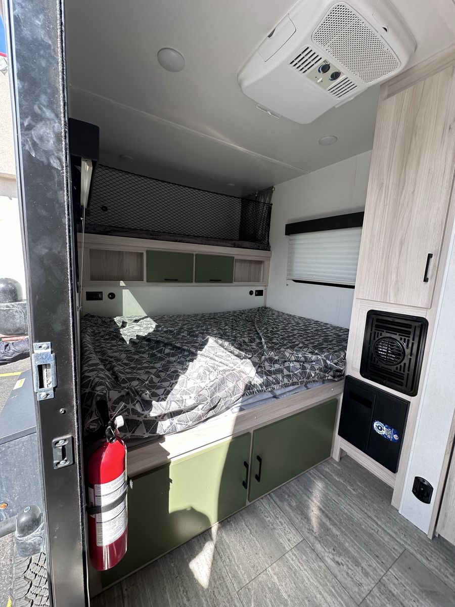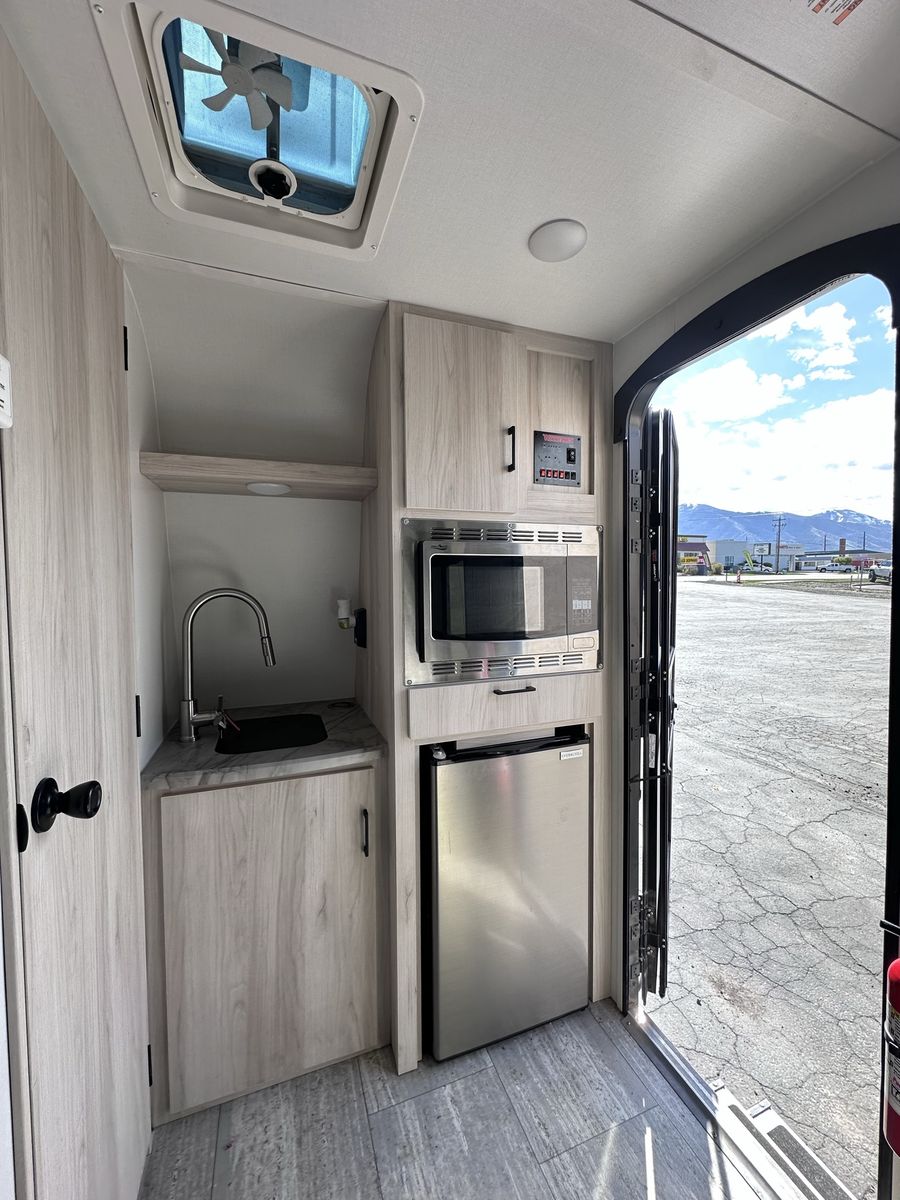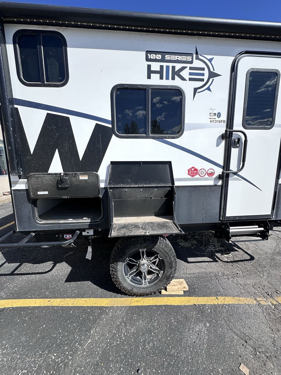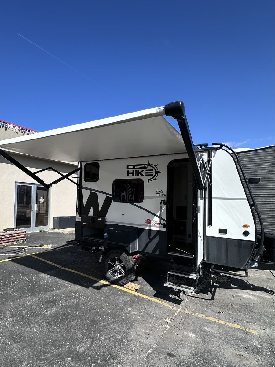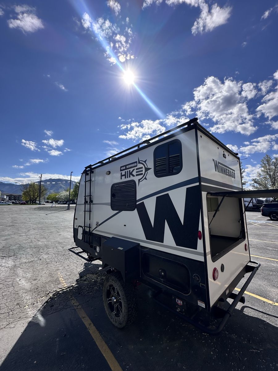 The 2023 Winnebago Hike 100 H1316FB is engineered for the minimalist adventurer who refuses to compromise on capability. At just under 16 feet long and light enough to be towed by many mid-sized SUVs, this rugged travel trailer is your ticket to off-grid freedom. Built for the Backroads Off-Road Ready: Features a premium independent suspension, BAL® NXG engineered frame, and beefy 16" Goodyear® Wrangler all-terrain tires for superior ground clearance on rough trails. Gear Hauling Power: The patented exterior exoskeleton rack easily accepts Thule® accessories for your kayaks or paddleboards, while the 2" rear receiver handles your heavy-duty bike racks. True Off-Grid Capability: Stay powered up with a standard 200-watt solar panel and 30-amp controller. Interior Comforts & Innovation Spacious Living: Enjoy a full 6'5" interior height throughout—no more stooping, even in the wet bath. Versatile Sleeping: Comfortably sleeps 3 with a queen bed and an upper loft bunk. Modern Galley: Includes a portable induction cooktop (use it inside or out!), a 1.1 cu. ft. convection microwave, and a 3.1 cu. ft. compressor refrigerator. All-Season Protection: Features a fully enclosed underbelly with 12V tank heaters and radiant foil insulation to keep you comfortable from summer peaks to winter valleys.