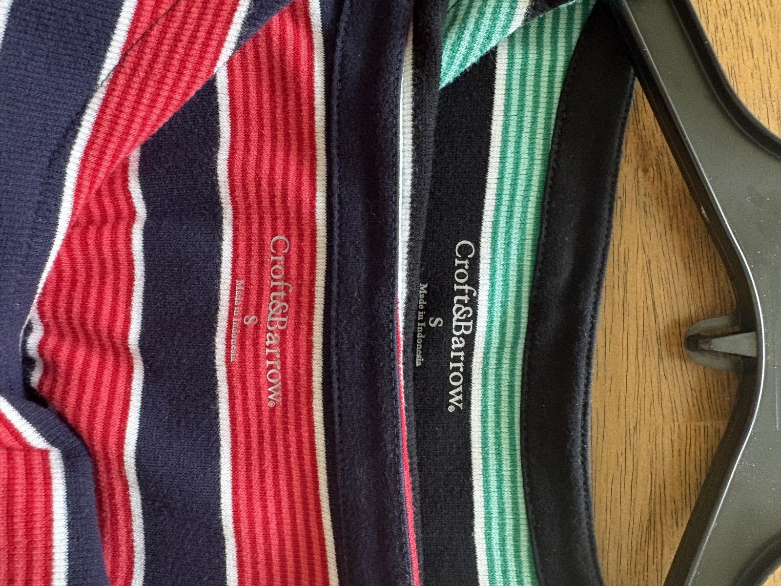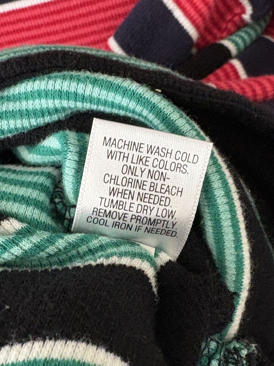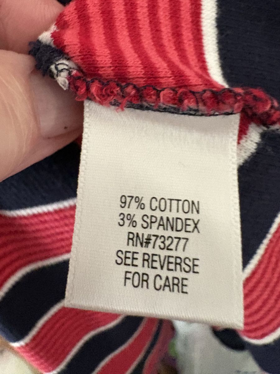 Misses Croft & Barrow Striped Tops in Small, one in Red/Navy Stripes and one in Green/Navy Stripes. See Photos for fabric content and Laundry instructions.