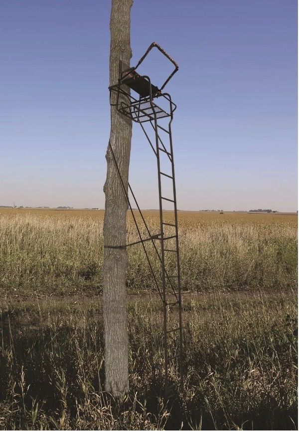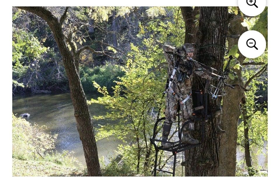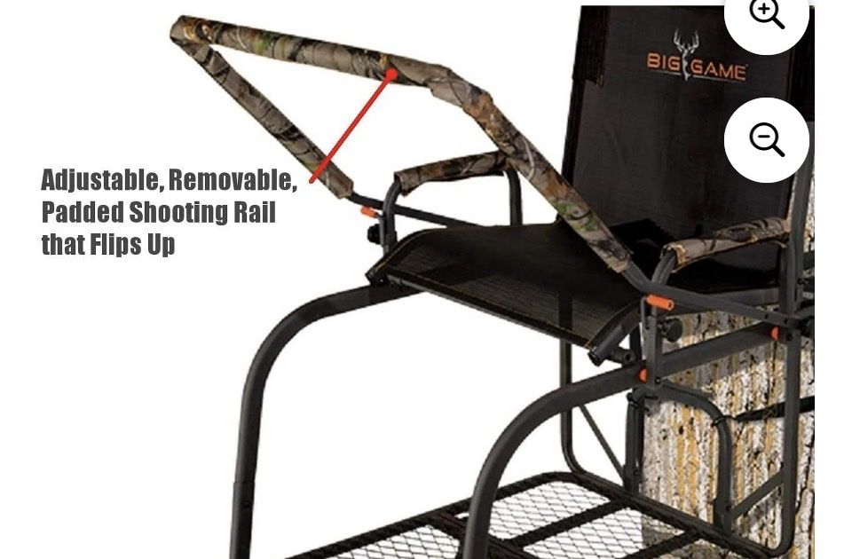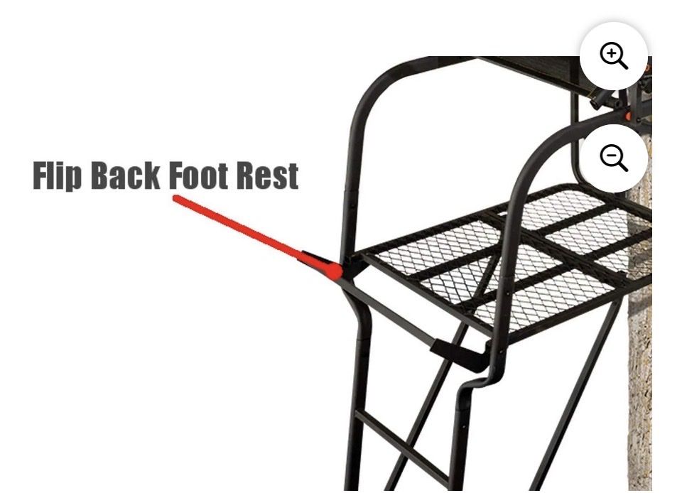 When you're hunting, you need a tree stand that is comfortable while you wait for your prey. With the Big Game Hunter HD 1.5 1-Person Ladder Tree Stand, you can stay comfortable and ready at your favorite hunting spot. Hunt deer and other big game safely from this 1-person ladder tree stand thanks to its included fully-body fall-arrest system safety harness. The extra wide 23- by 18-inch Flex-Tek seat contours to your legs and back for support and comfort, so you'll never get stiff while you wait. Whether you're a rifle hunter who likes to sit or a bow hunter who likes to stand, this ladder tree stand provides the space you need. While you sit, you can adjust the padded shooting rail to suit your needs. The shooting rail sits at 18.5 feet off the ground, so you'll be far above any animals below. For standing, simply slip the shooting rail back and flip the seat back. This ladder tree stand has a large, 23.5-inch-wide by 29-inch-deep foot platform. This tree stand supports up to 350 pounds of person and gear. You can attach the ladder tree stand to any tree 9 to 20 inches in diameter.