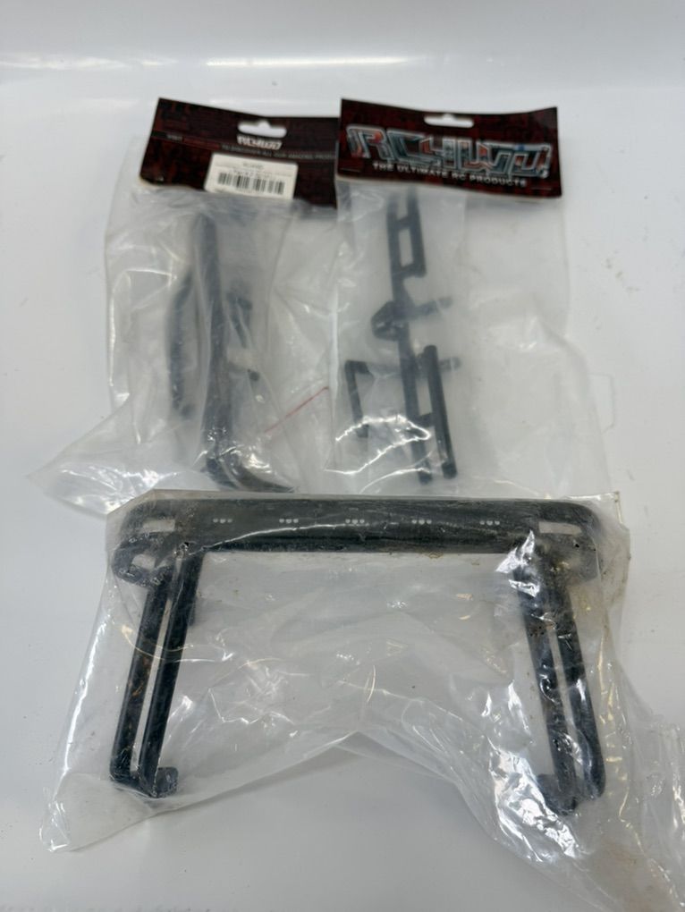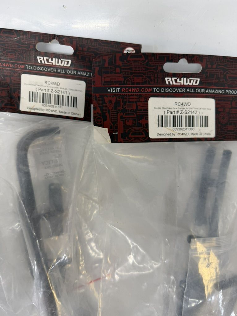 These are the RC4WD new in package Front/Rear Double Roll Bar bumpers and Headache rack Rollbar to convert Back to the future Xtra cab Toyota to make your own rig. I sourced these to copy the RTR BTTF rig that was discontinued, all new. Will also work with RC4WD trail finder TF2 trucks etc