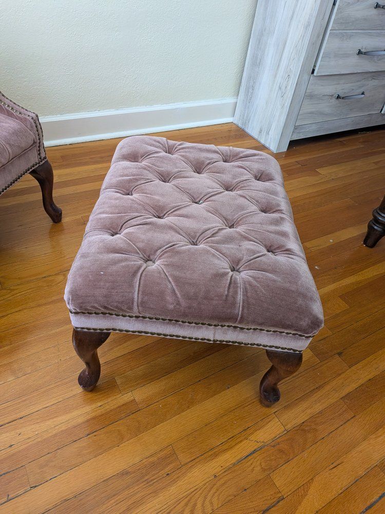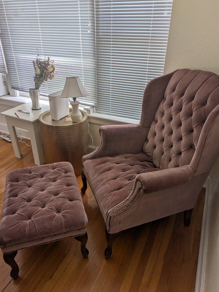 PayPalBeautiful tufted wingback chair with matching ottoman for sale.