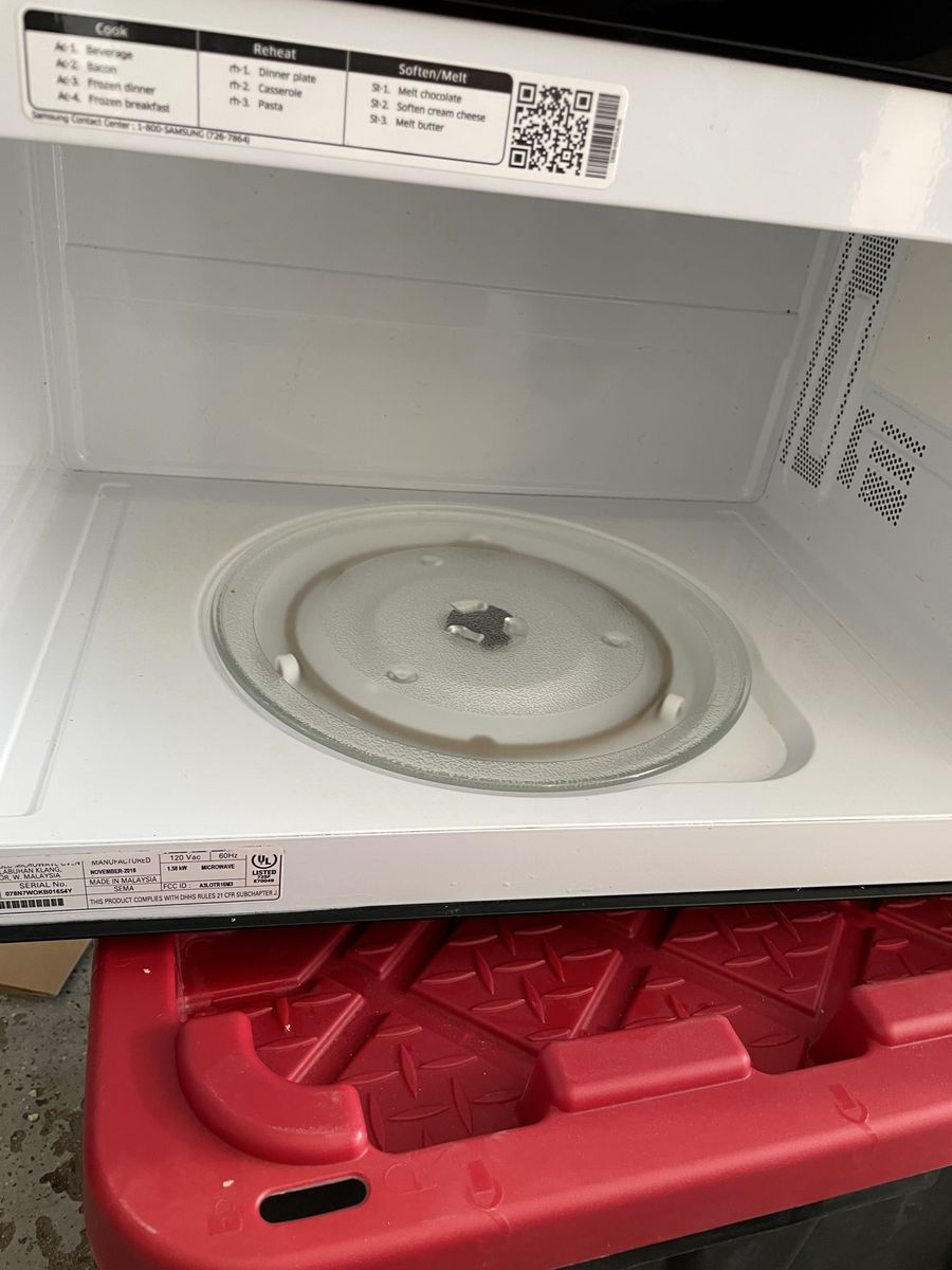 VenmoSamsung under cabinet mount microwave. 1.58 kw (~1800 W) 60 hz. Works perfectly, clean. Just removed from the home on 4/12 for a remodel.