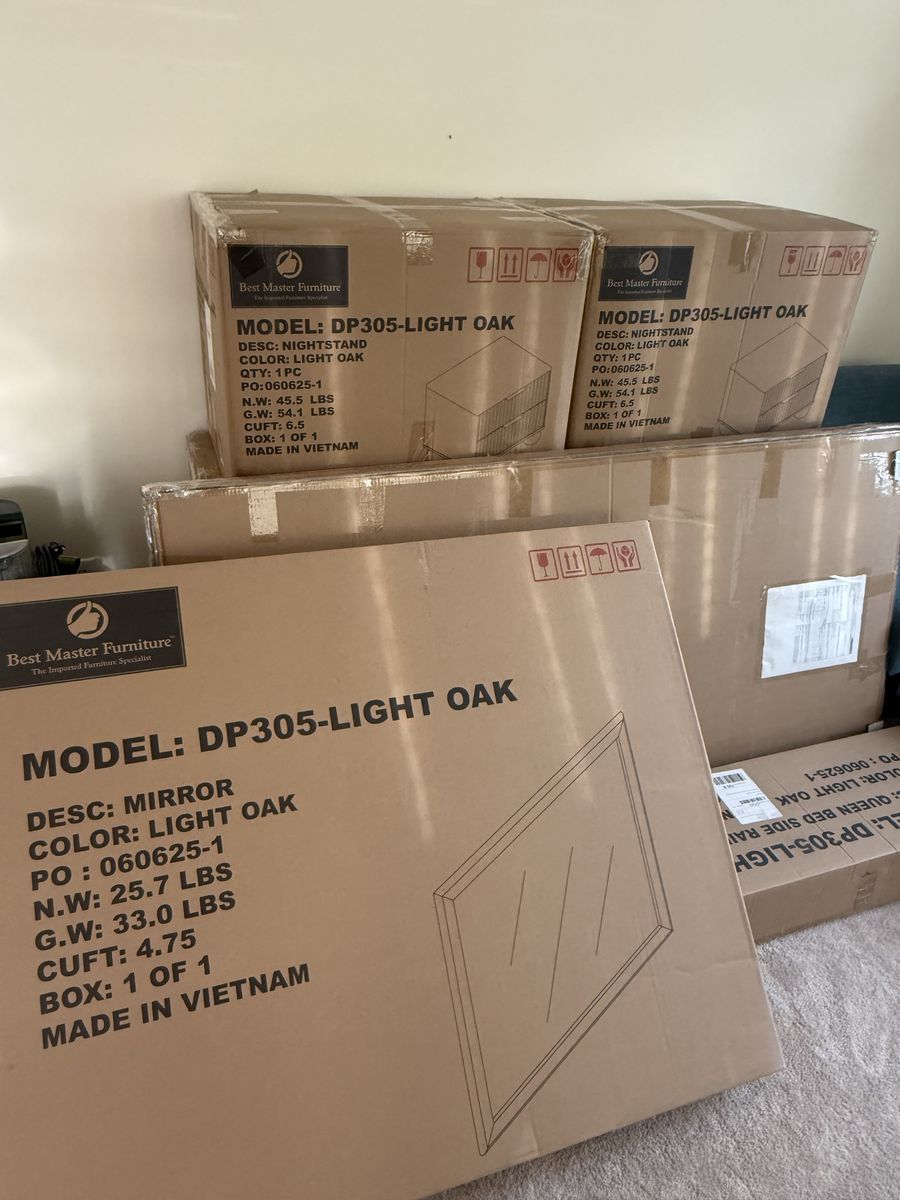 VenmoWayfair 5 Pieces Bedroom Set. Includes: (1) Queen bed frame, (2) nightstands, (1) dresser and (1) mirror. Brand new, still in original boxes.