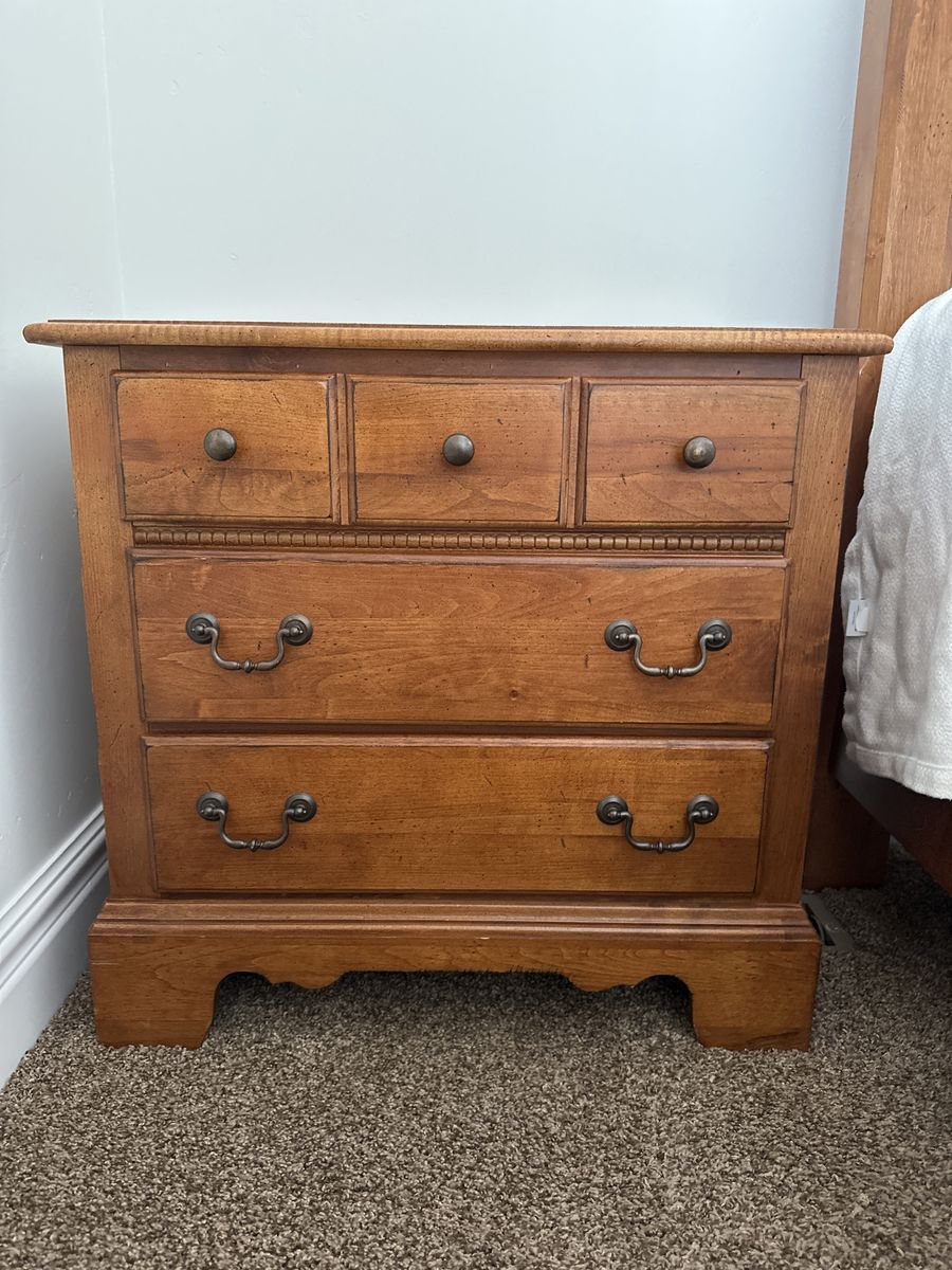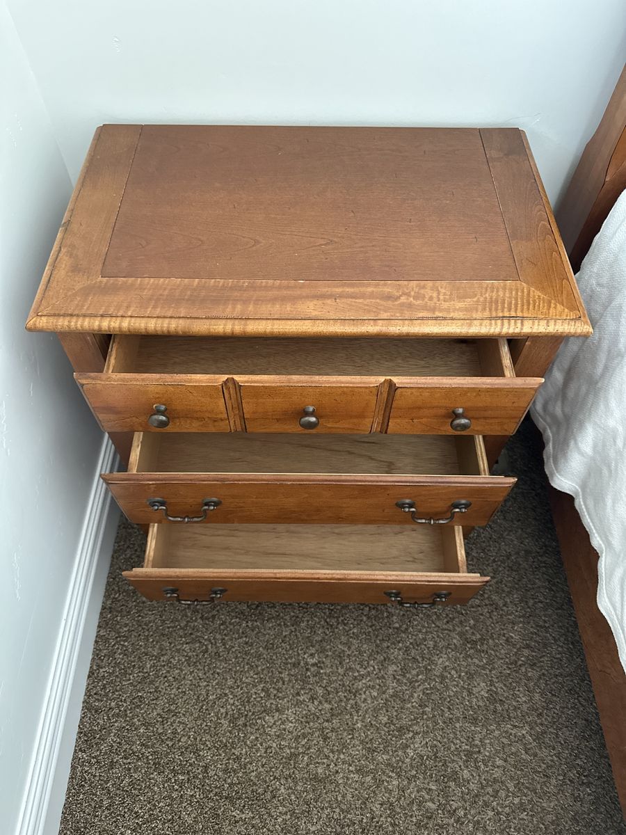 VenmoQueen, bed frame, and three drawer nightstand