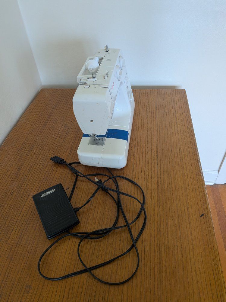 Includes foot pedal and power cord (shown in photos). Fully working and sews great—I’ve used it regularly, just selling because I’m moving.
