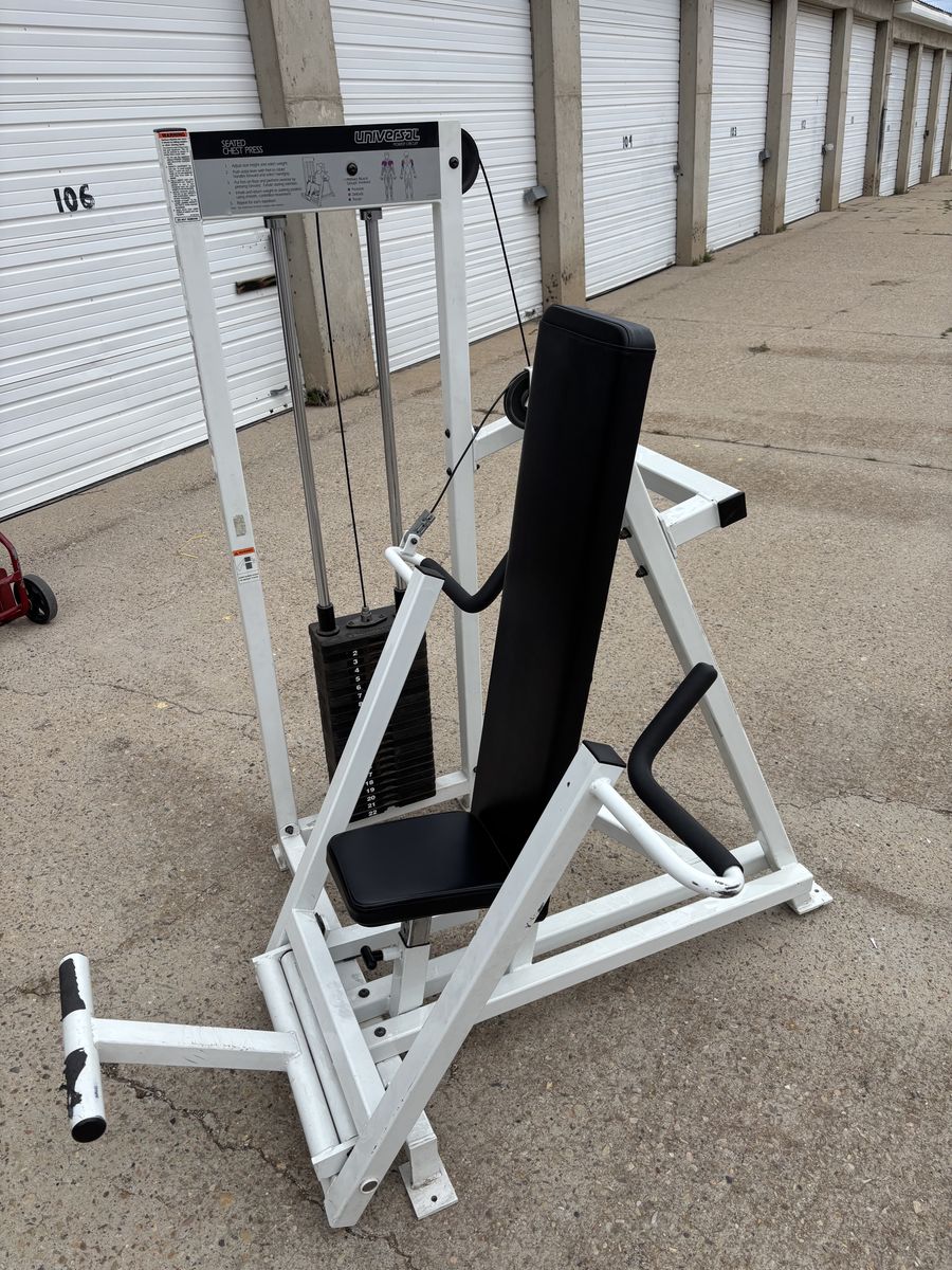 VenmoVery nice chest press machine by Universal. What makes this machine awesome is it has a foot pedal assist system to lift off and awesome range of motion. Great grip options as well Very nice machine. $500 Driveway delivery negotiable