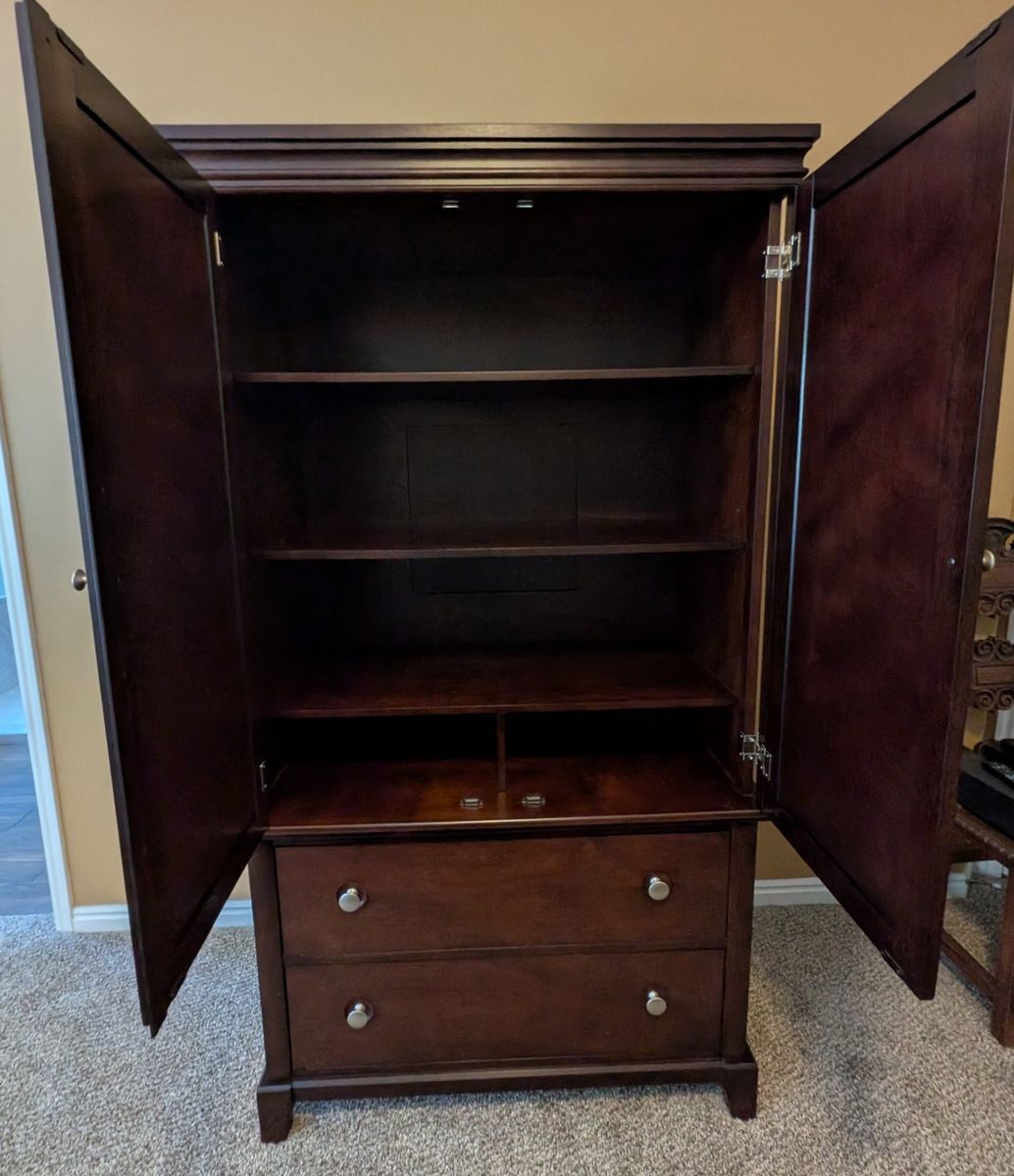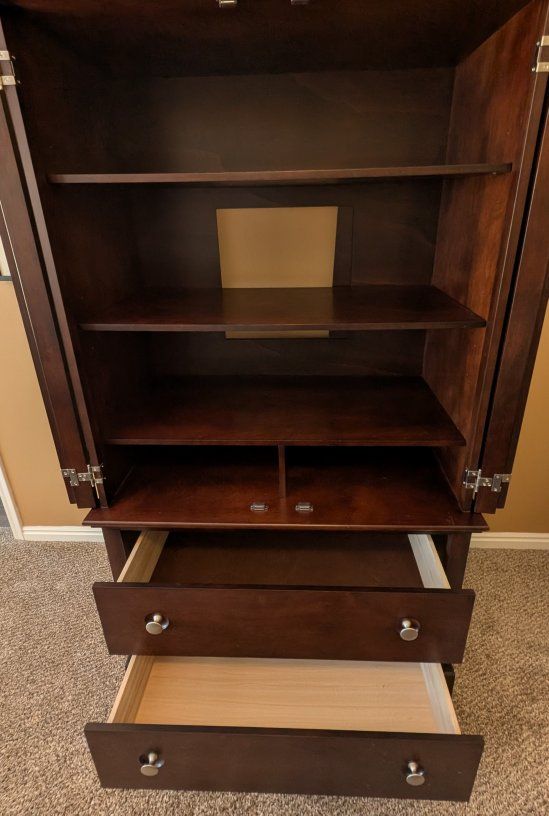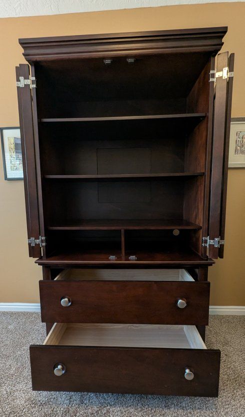 VenmoThis nice Cherrywood Armoire/ TV cabinet w/h drawers is now available for you to add to your bedroom, dining or living room. It has two removable/adjustable shelves and two easy glide drawers for storage.