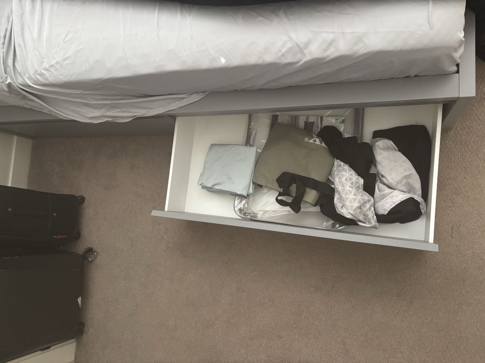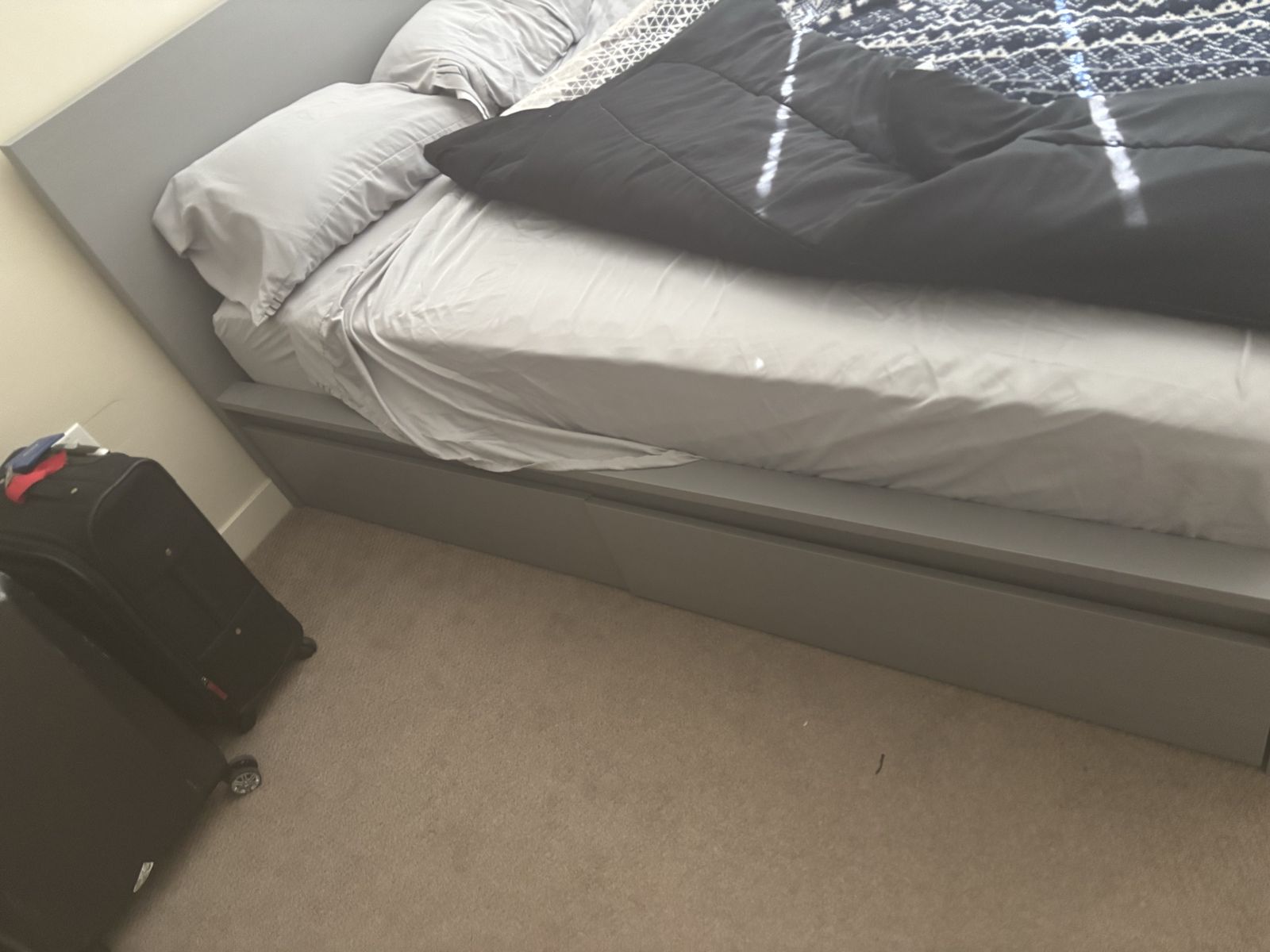 ZelleGray Queen-size bedframe. Comes with to spacious drawers for storage.