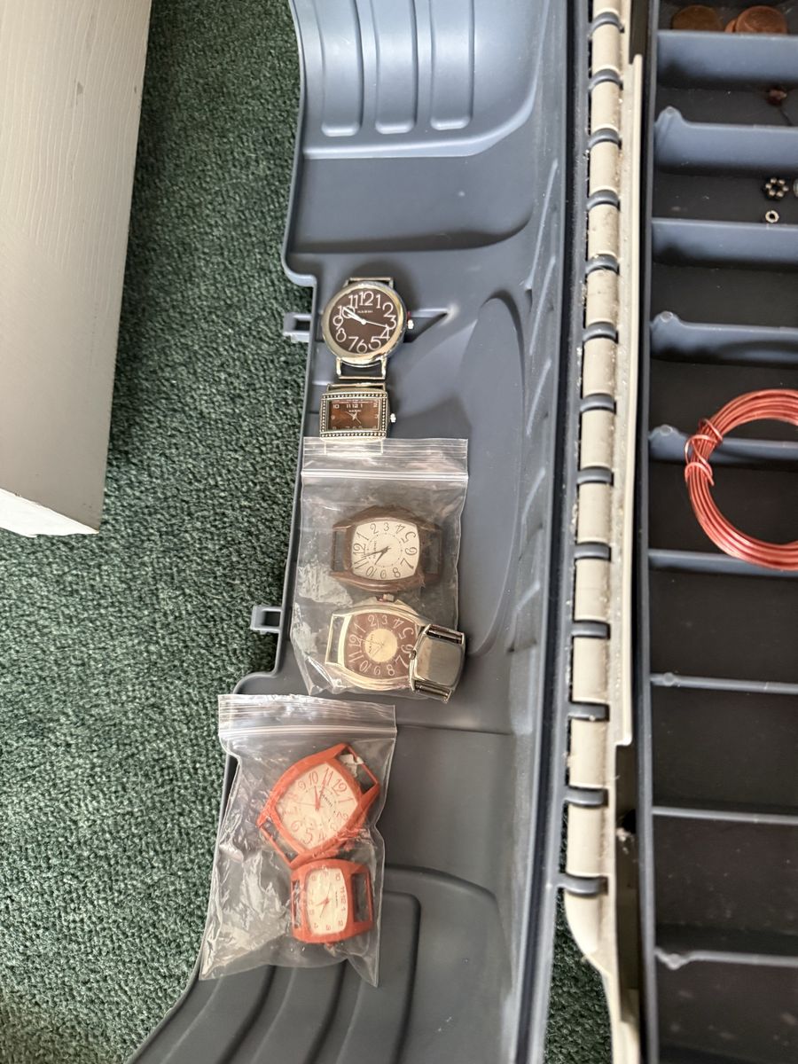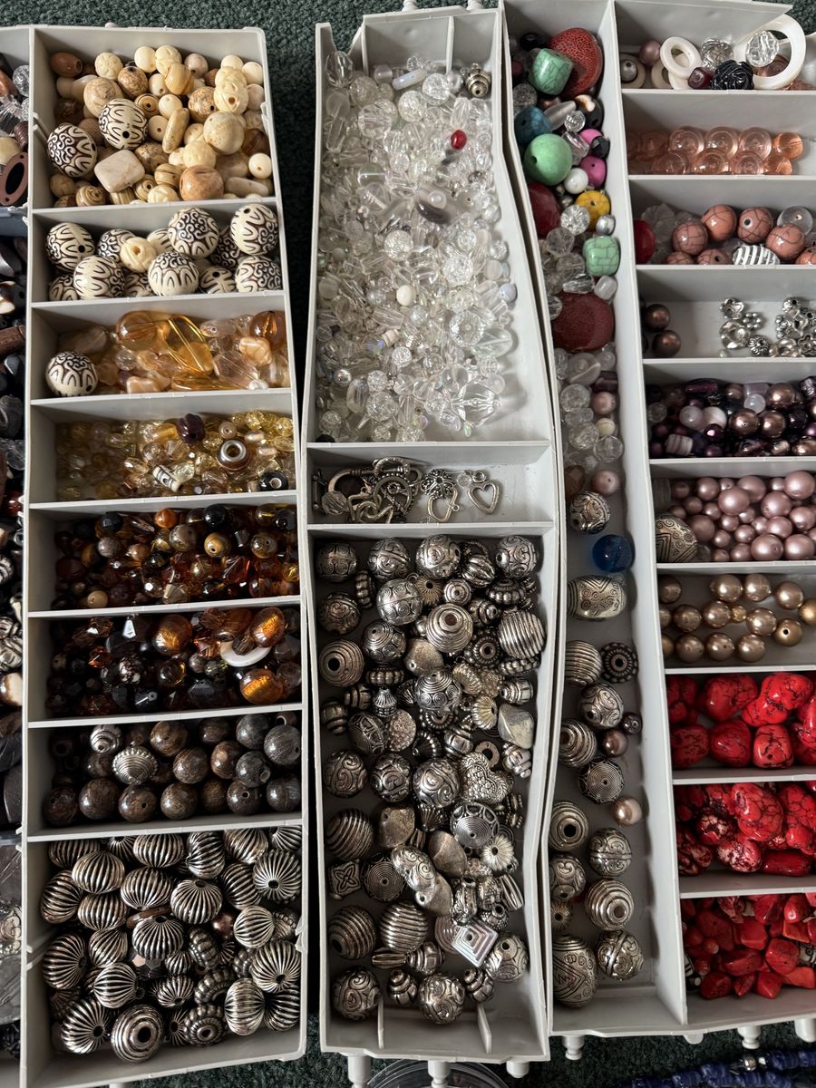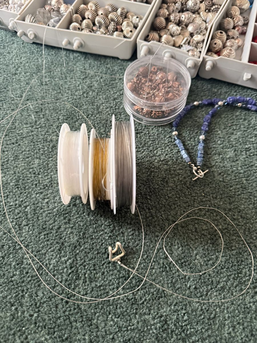 VenmoSeveral different sizes and shapes of beads for making jewelry or watches or crafts. Has wire, silver, gold, and fishing line.