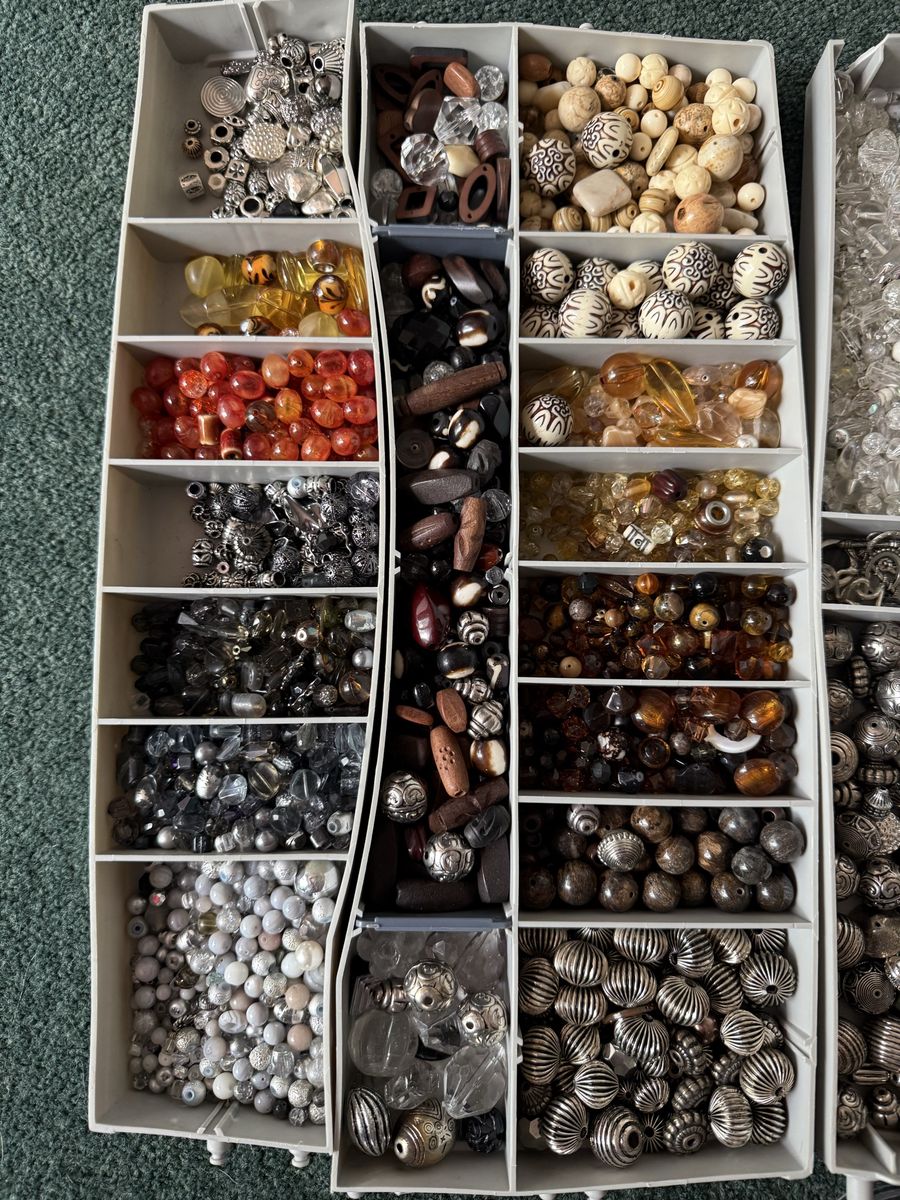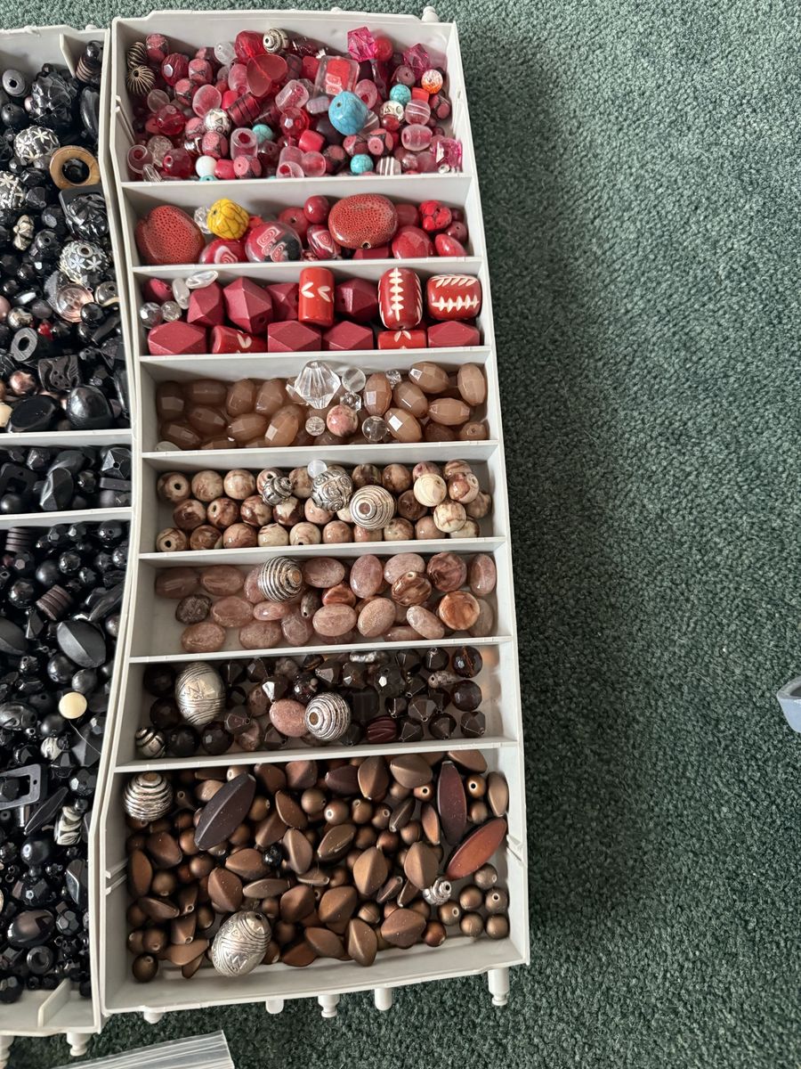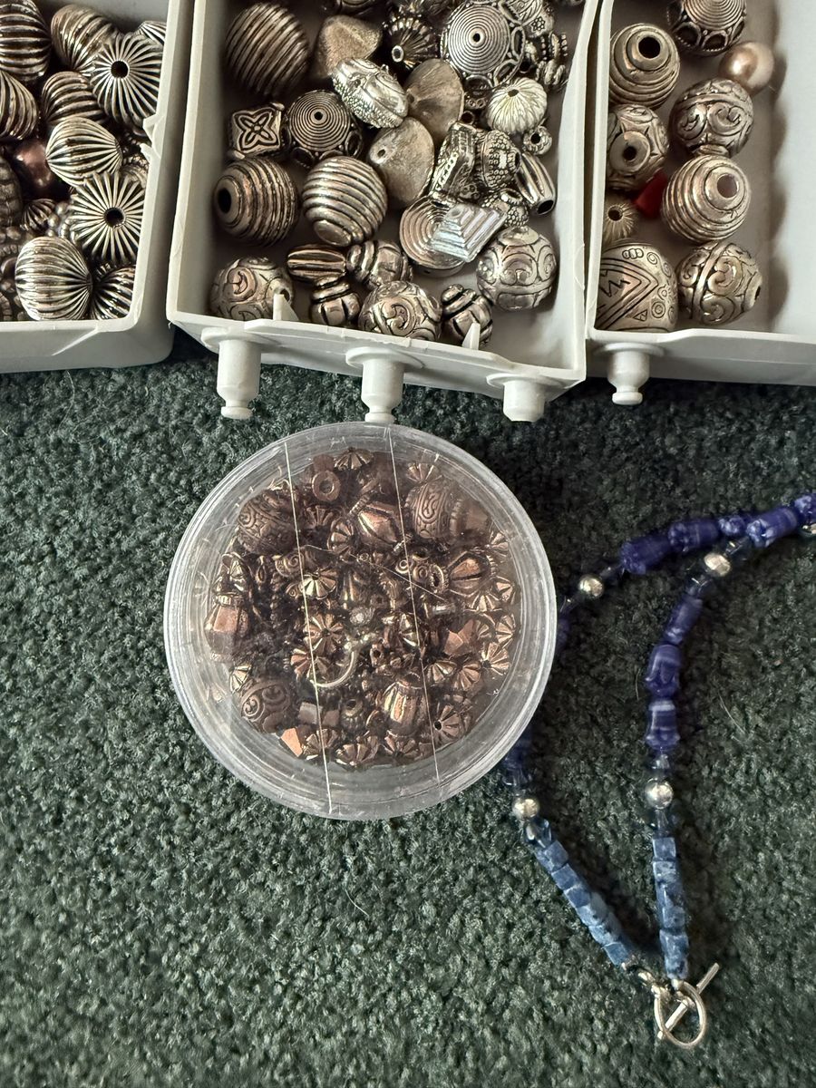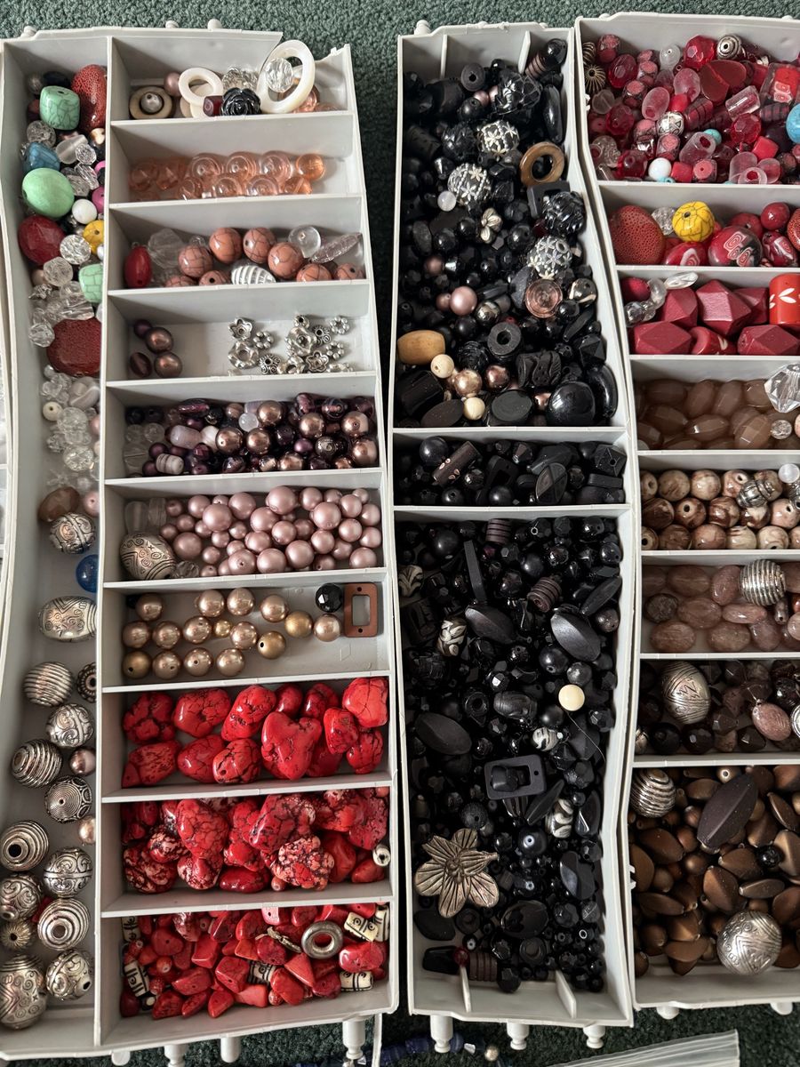 VenmoSeveral different sizes and shapes of beads for making jewelry or watches or crafts. Has wire, silver, gold, and fishing line.