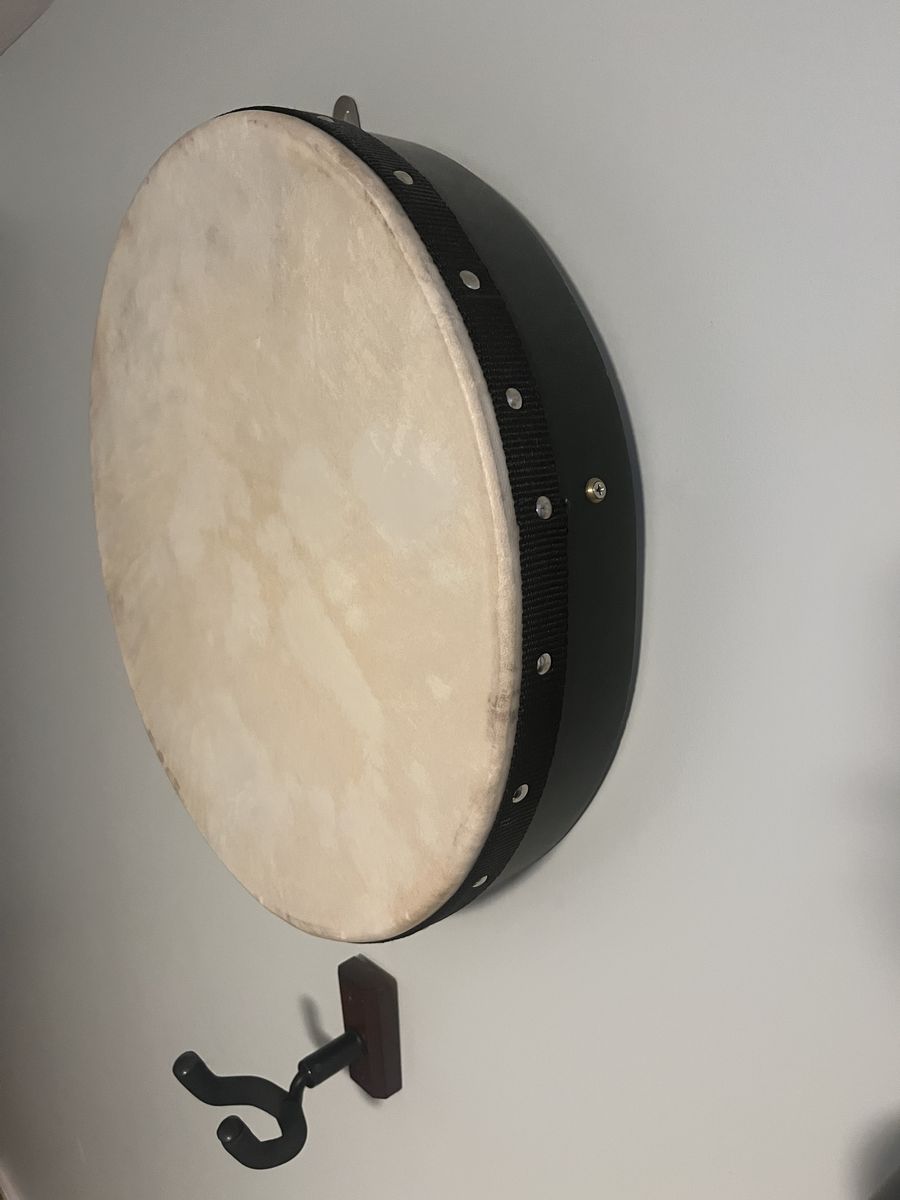 PayPalThis is a large irish Bodhran drum. It's a traditional wooden frame and sheepskin leather. It is new (well, used a couple of times to be honest) and comes with a wooden tipper. Beautiful deep sound that's perfect for for upbeat music.