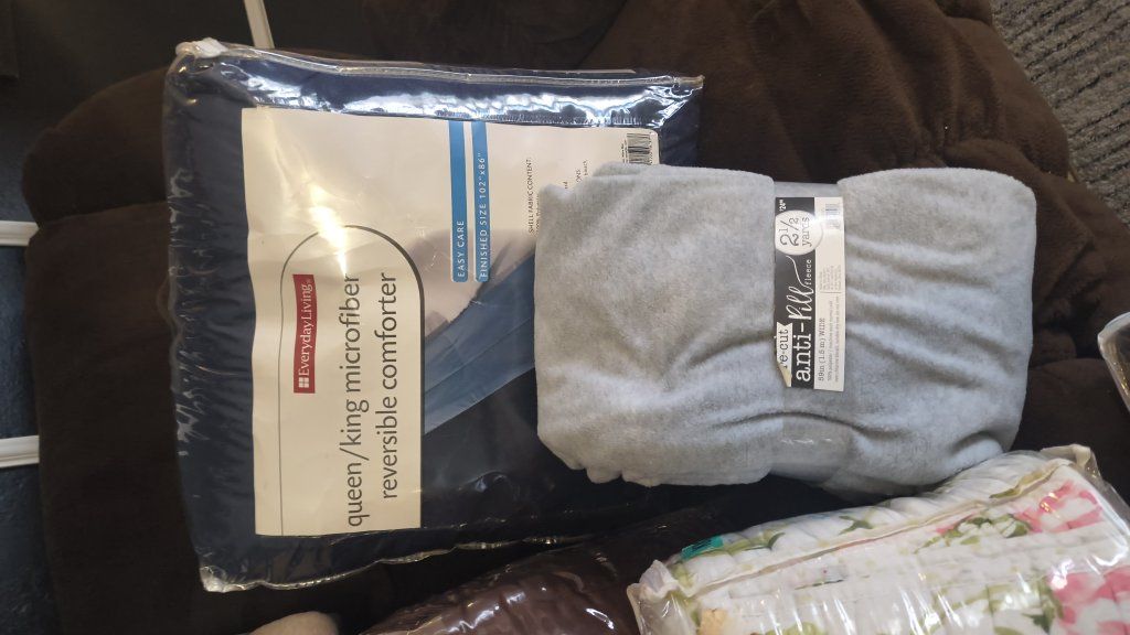 CashAppFive king size comforters brand-new in the package and four fleece blankets and a queen size flat sheet for a great price.