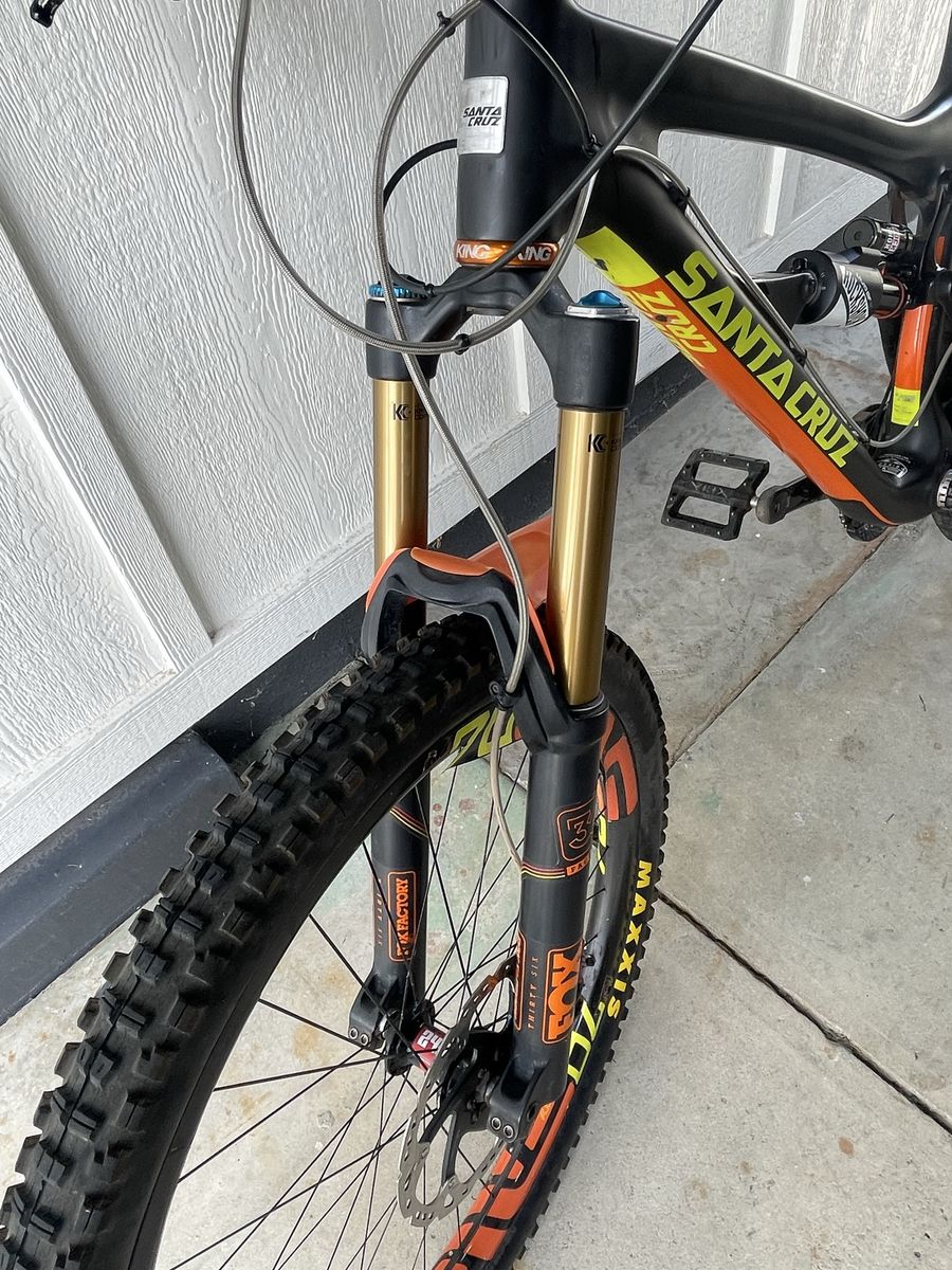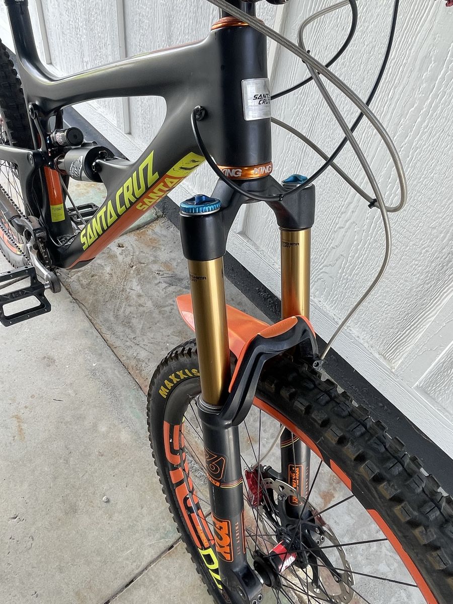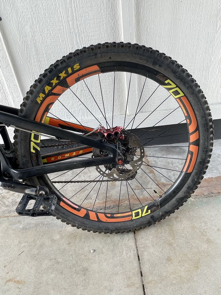 Santa Cruz Nomad Carbon Composite Size: XL 27.5 Enve Carbon m70 wheels Rockshox vivid air R2C rear suspension FOX 36 Factory front Fork with Kashima Coat Shimano XTR drivetrain Rockshox Reverb dropper seatpost Chris King headset Enve handlebars