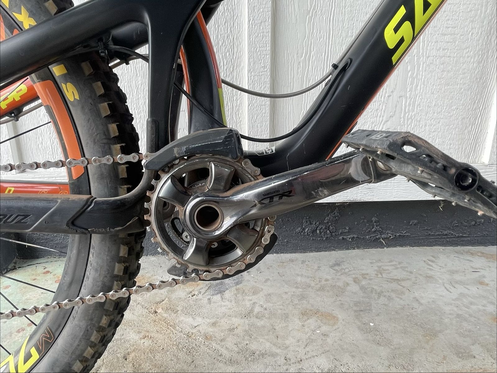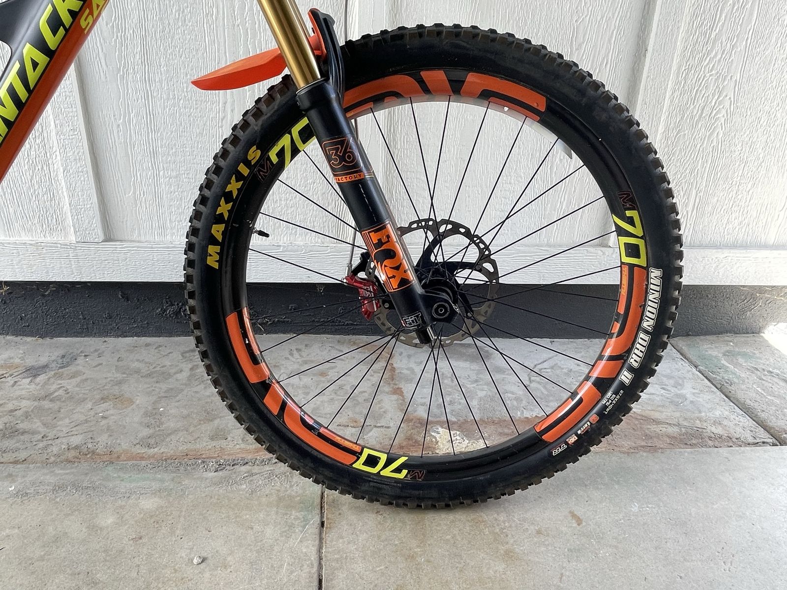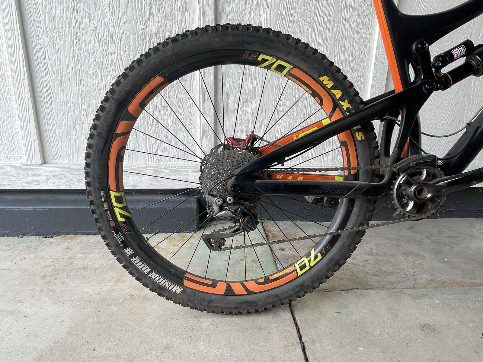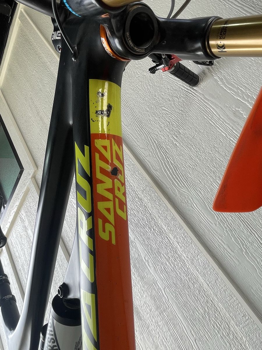 Bike has a few scuffs on the paint(shown in picture at end) and could use a tune up,but overall in great shape. Tons of high end upgrades.
