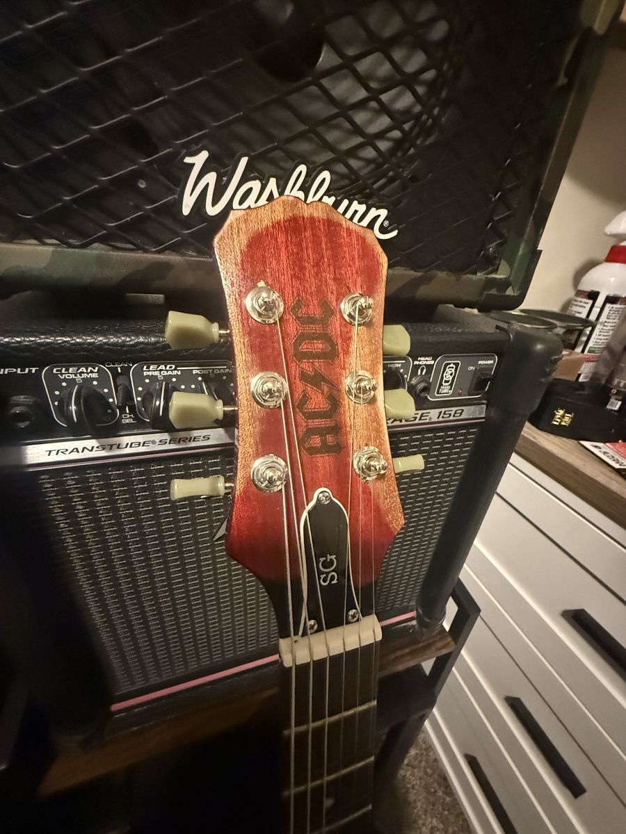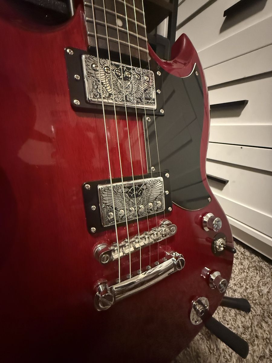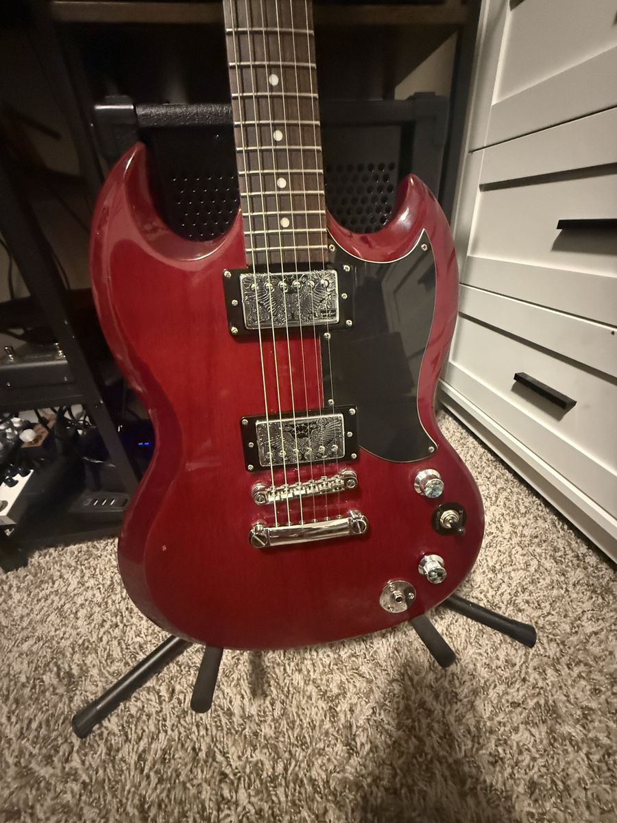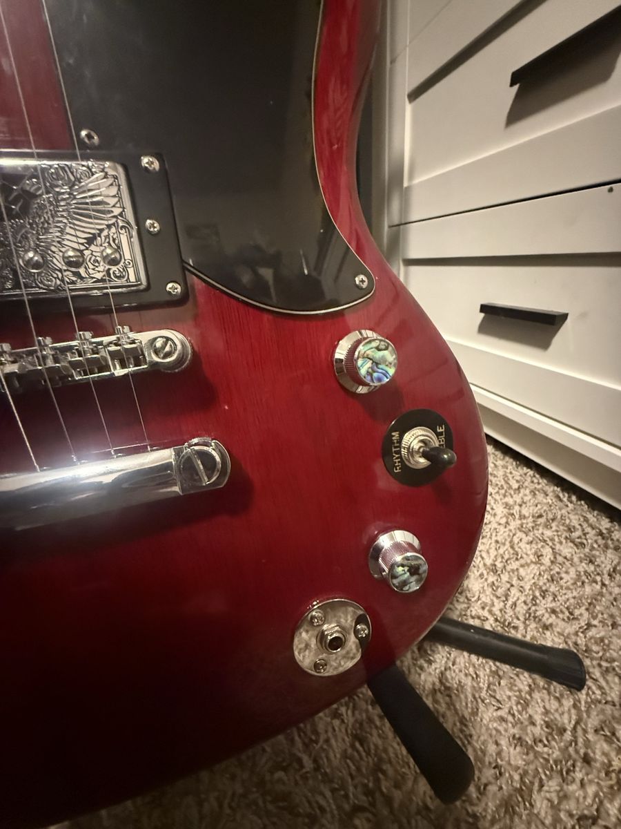 VenmoGreat guitar, loaded with probucker pickups with custom covers, both knobs are volume/splitcoil push pull pots to provide different tone variations. Neck is bolt on with custom Engraving on headstock, locking guyker tuners. Located in Springville Utah, pickup only, text is best to get a hold of me. Thank you, Eden