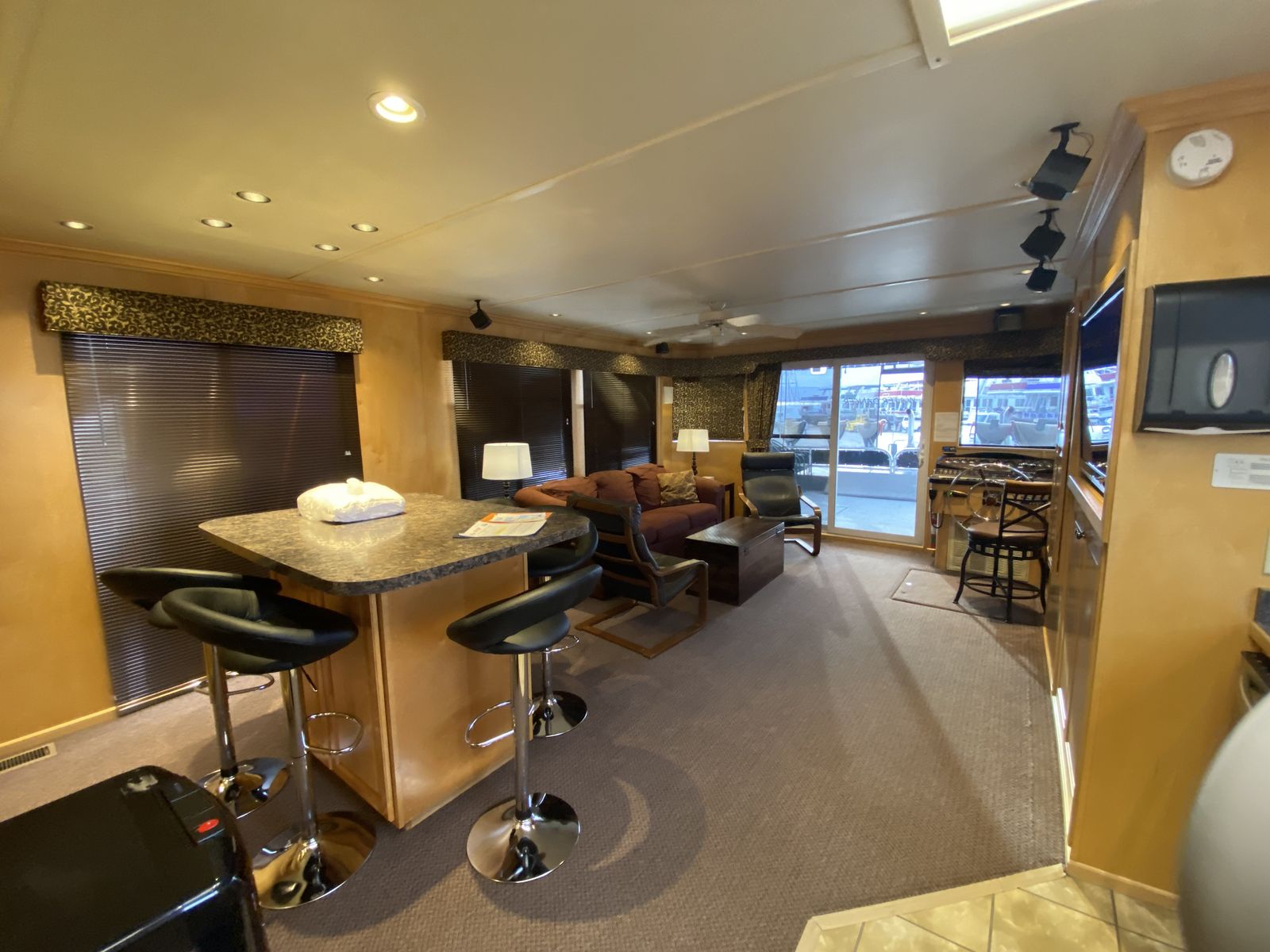The top deck is fully screened with a fiberglass hardtop and includes a wet bar with a mix of covered and open spaces for entertainment. This boat is an excellent choice for owners of smaller houseboats looking for an upgrade. Despite its age, its low hours and extensive refurbishment make it feel like a new boat—without the hassle of first-year maintenance issues—all at pricing comparable to older models.