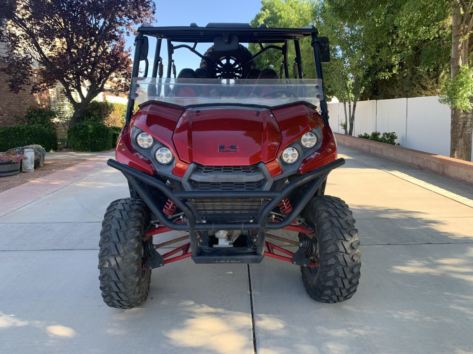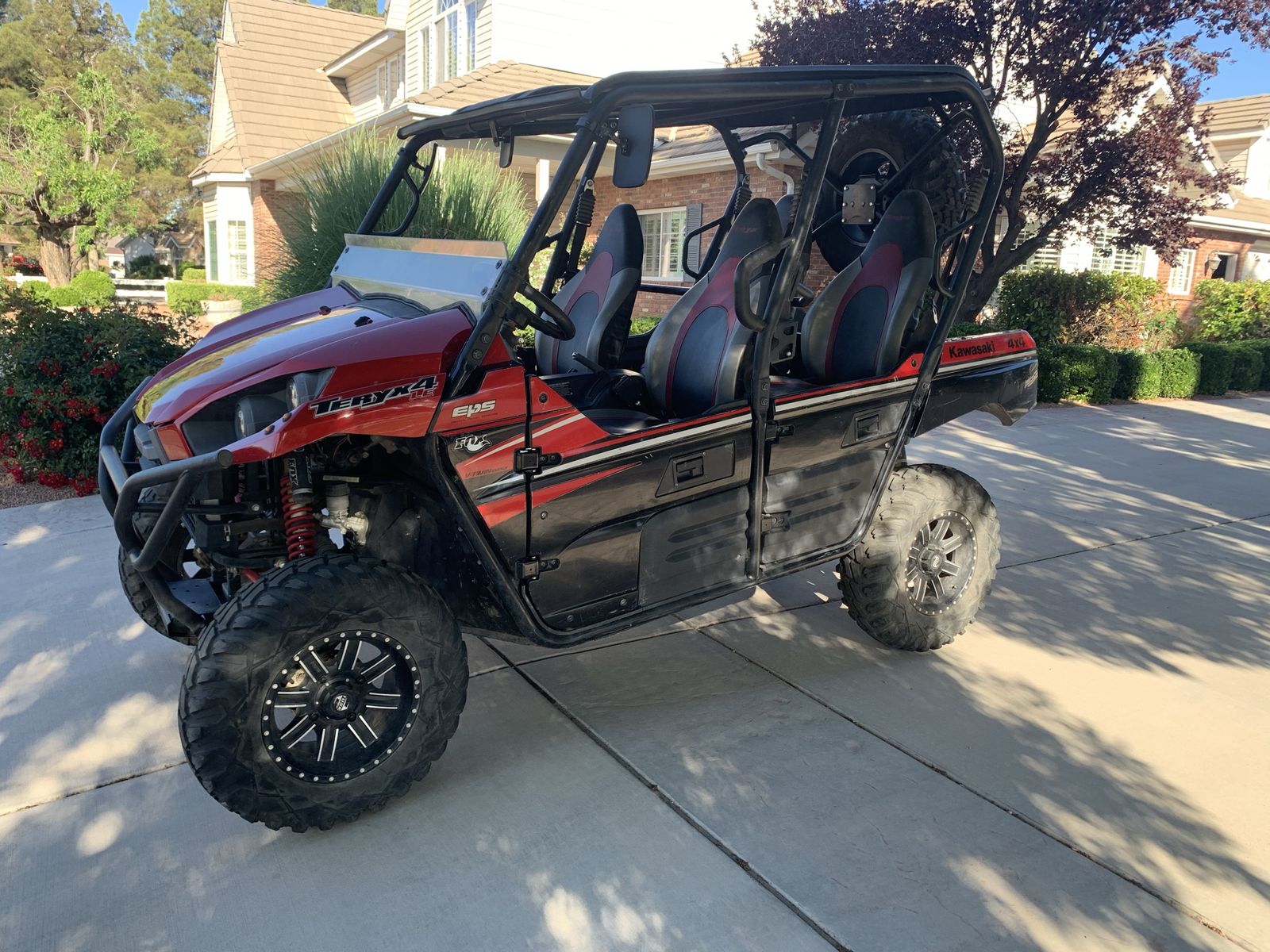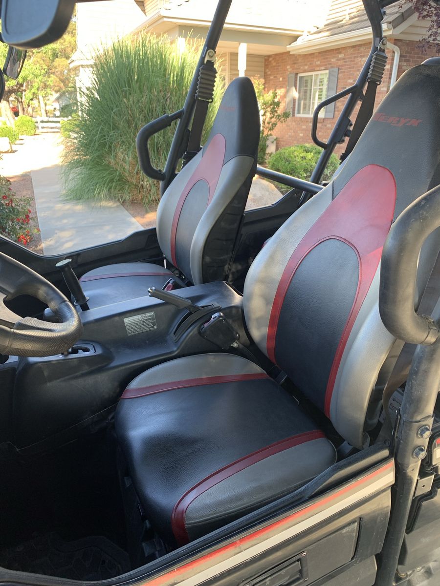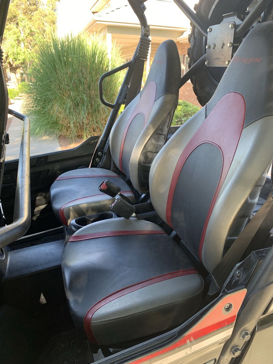 Nice Red four place side by side. Only 2800 miles. Great wheels and tires with mounted spare. Nice seats. Street legal lights and mirrors. It comes with a perfect trailer for it for only $1000 more including tie down straps.