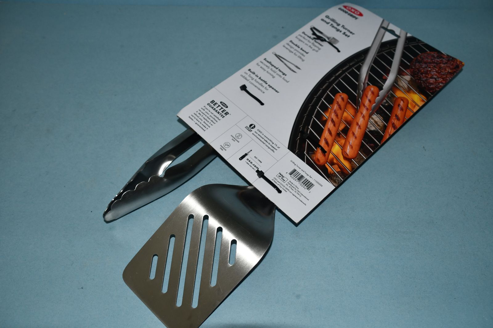 This NEW Set of an OXO BBQ GRILLING TURNER & TONGS SET is from a smoke free home. They are STAINLESS STEEL & DISHWASHER SAFE. Questions??? Please ask. We are located in Plain City. Cash only please.