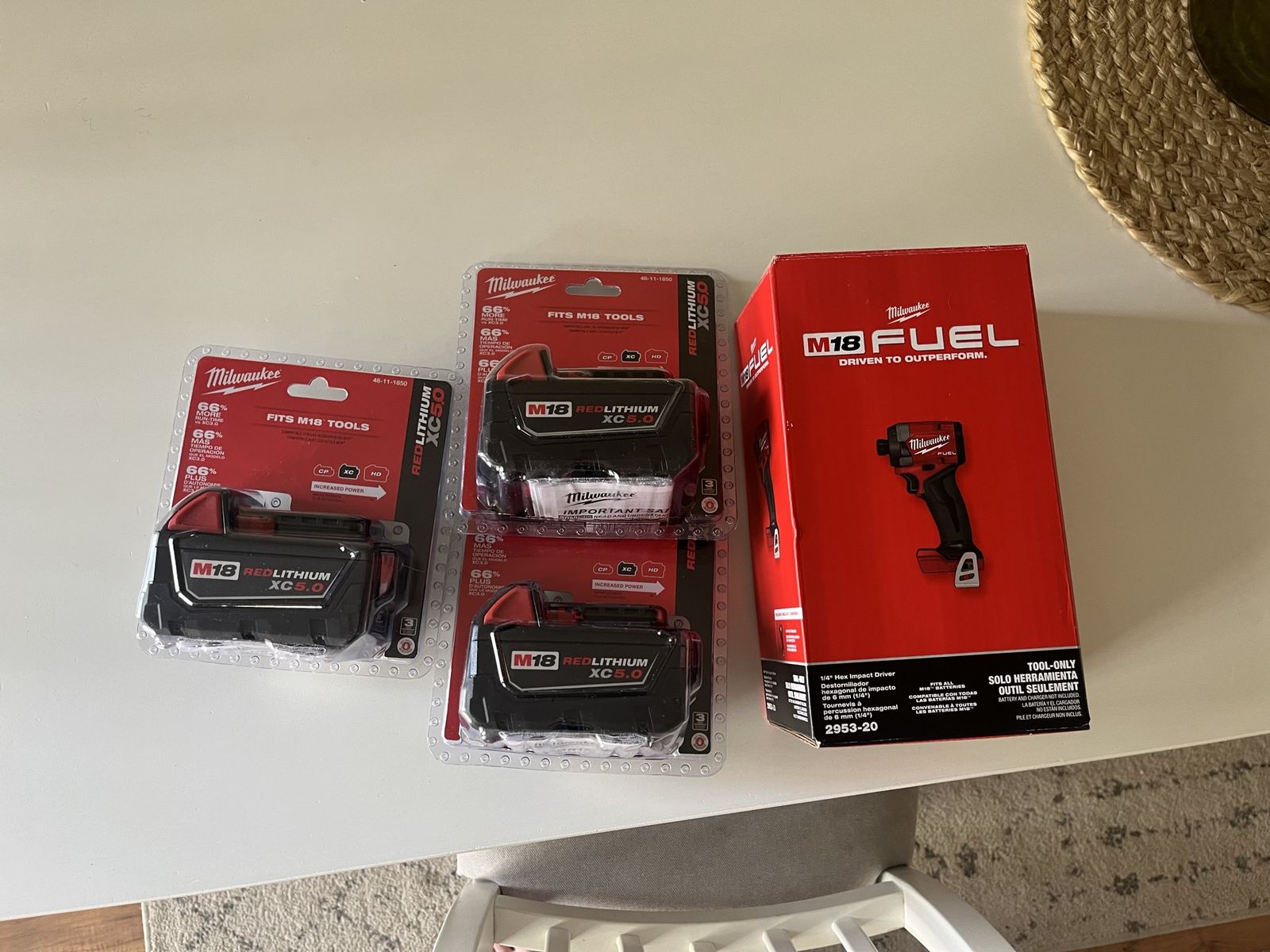 VenmoNew in box Milwaukee Impact and x3 M18 5.0 batteries.