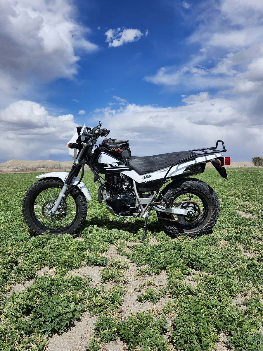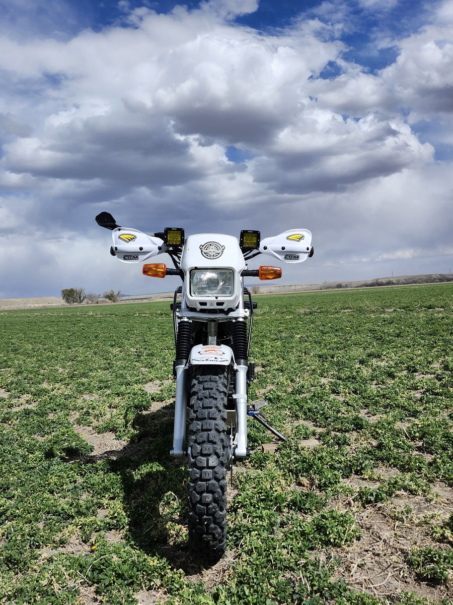 Lots if extras, tusk bars,bar risers,cyra pro bend hand guards with fold down mirror, pod lights,swat concepts taller seat,uni oiled air filter, IMS pegs, new front tire and HD tube, new chain and sprockets,DG slip on exuast, carb tuned so she ripps and sounds awesome! Tusk rear rack,aluminum skid plate, lighter lithium battery, oil changed regularly with oil filter. Valves were checked this winter.