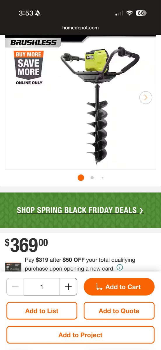 Make gardening easy with this RYOBI 40V HP Brushless Cordless Earth Auger with 8 in. Bit. This auger is lightweight and quiet, making it easier to use than a gas auger. The brushless motor extends how long the battery lasts between chargers so you can get more done.