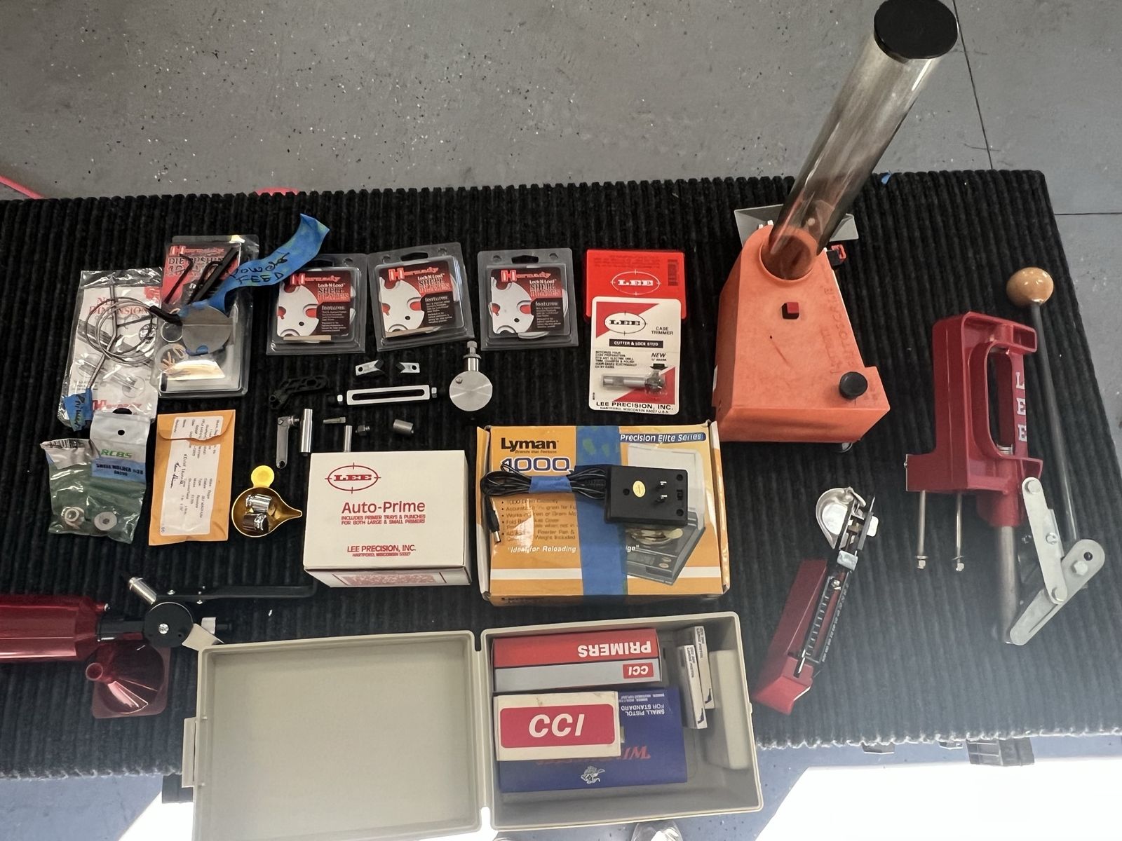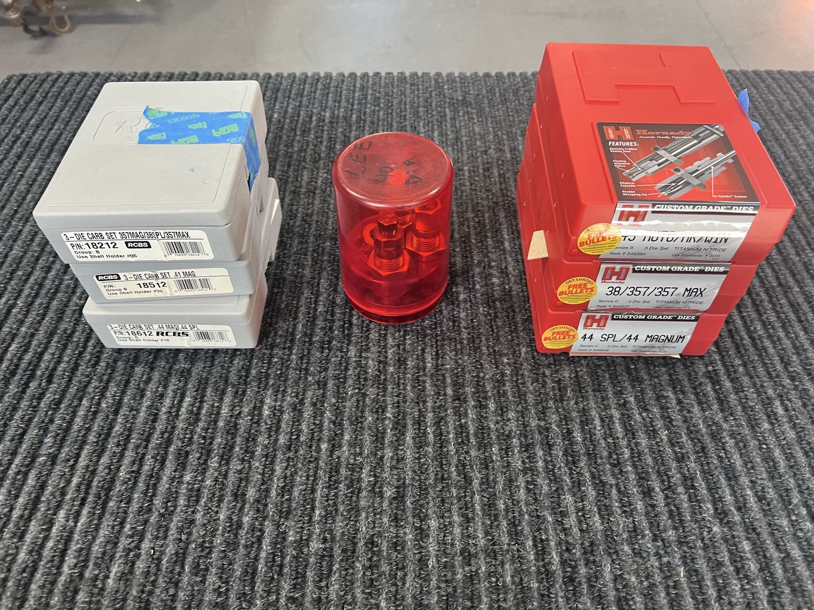 A complete progressive reloading setup for pistol calibers. Load up to 500 per hour. All accessories and needed equipment. I have 110 pics and video on request. Not parting out. OBO. Dies for 40,41,44,45,357,38,