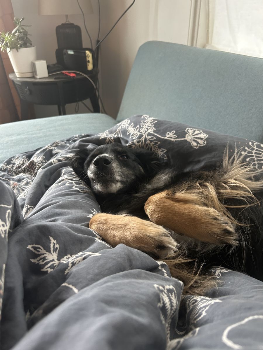 Ollie is a sweet, affectionate, and cuddly dog who loves being around his people. He enjoys playing tug-of-war and fetch, and he’s always up for an adventure. Ollie also loves to chase birds, cats, and squirrels, so he should always be kept on a leash or in a secure yard. He also really loves snow!