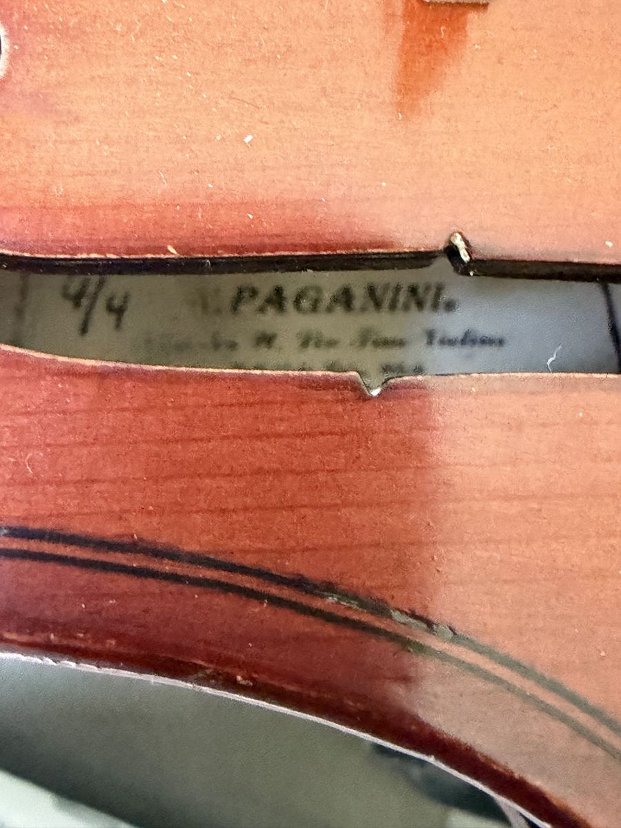 Details: • Full-size (4/4) violin • Labeled Paganini – Model No. 109740 • Clean, classic amber finish • Tuned and ready to play • Includes chin rest (as shown)
