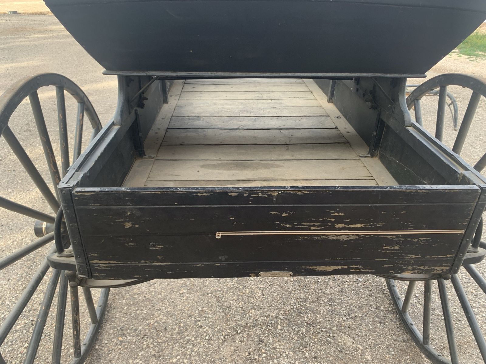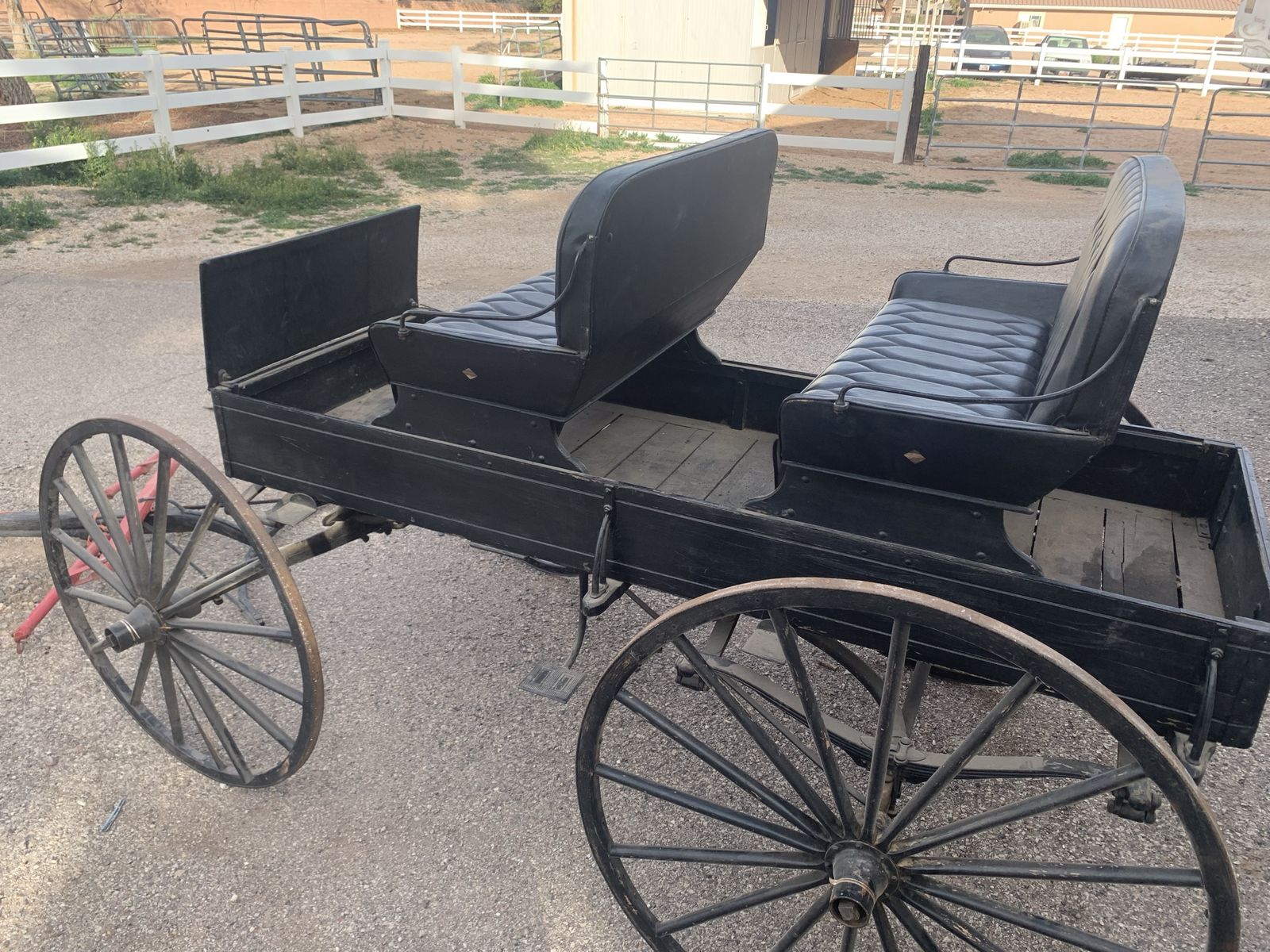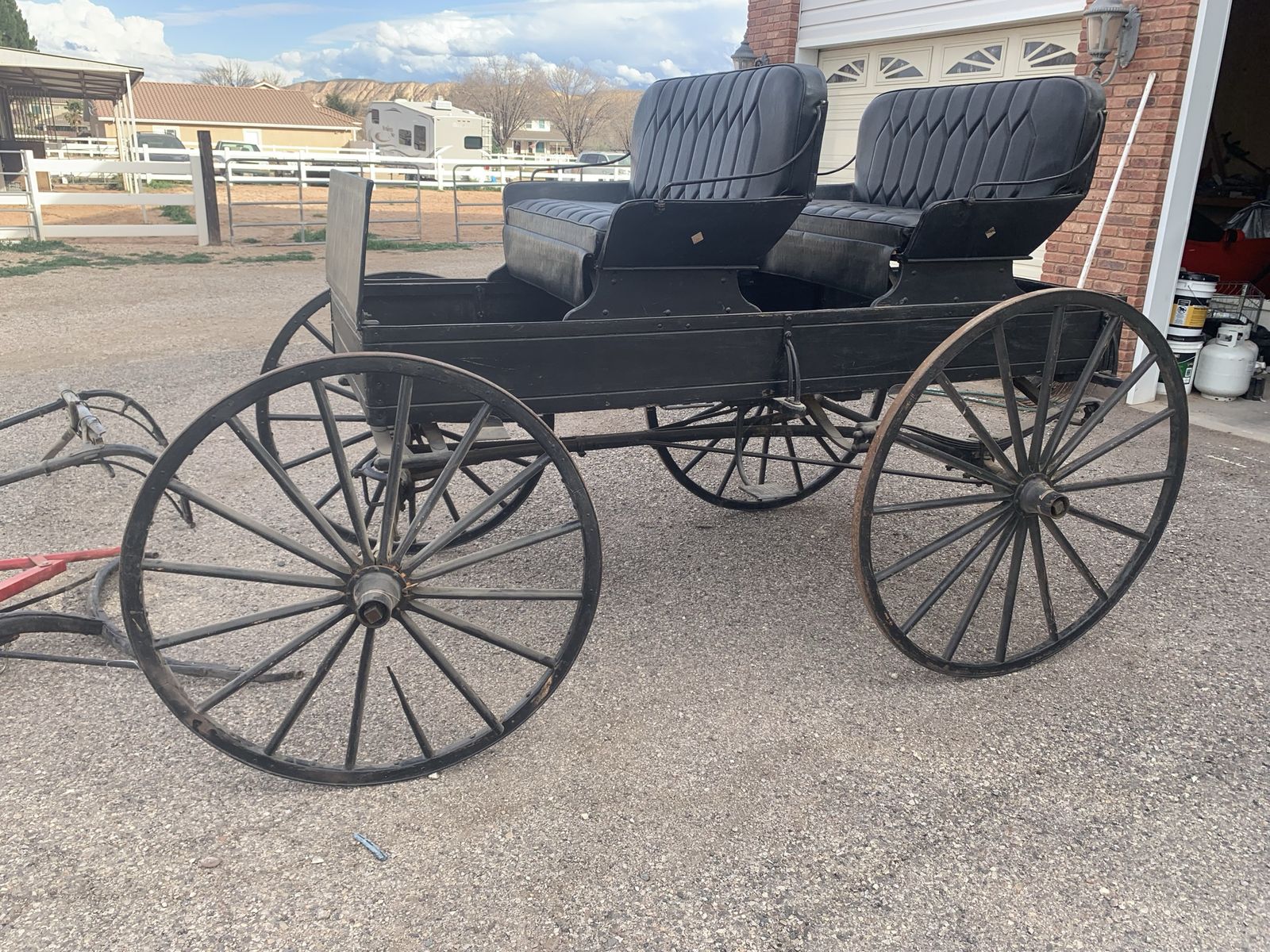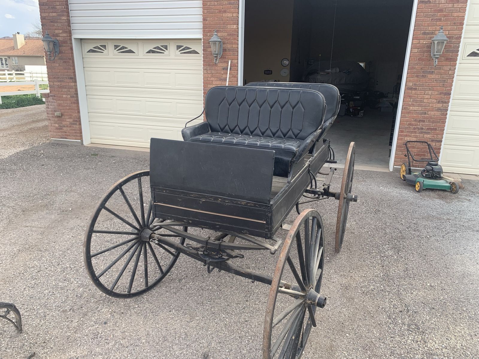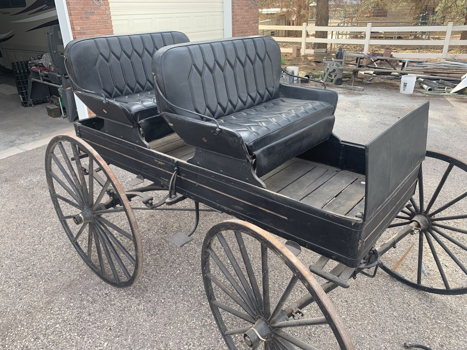 This antique carriage is the real deal! Probably 140 years old and in great shape. Seats have been redone, box is solid, axles good. One wheel is broken. I intended to put rubber wheels on but didn’t get it done. Nor did the horse get trained to pull it! I paid $2800 for it in 1996 and it’s been stored inside since then. Dreams have faded.