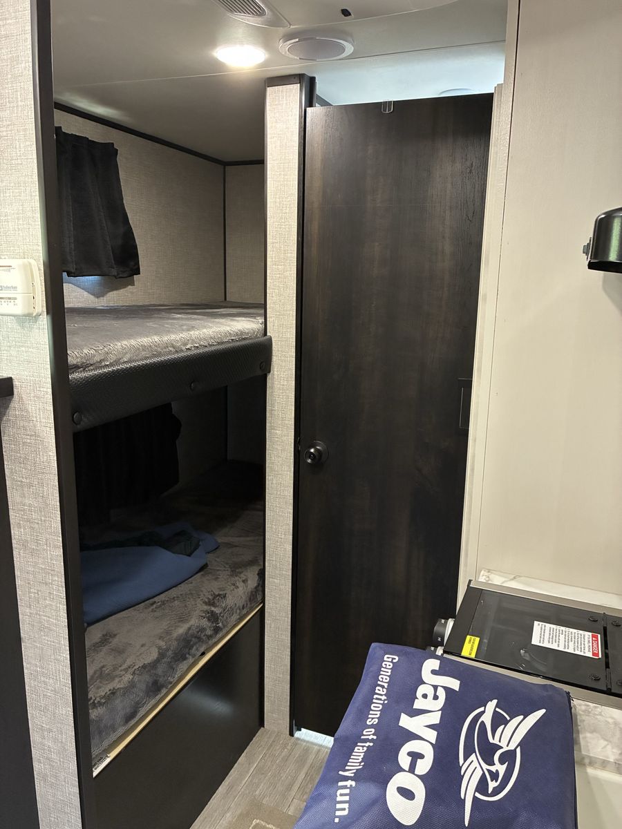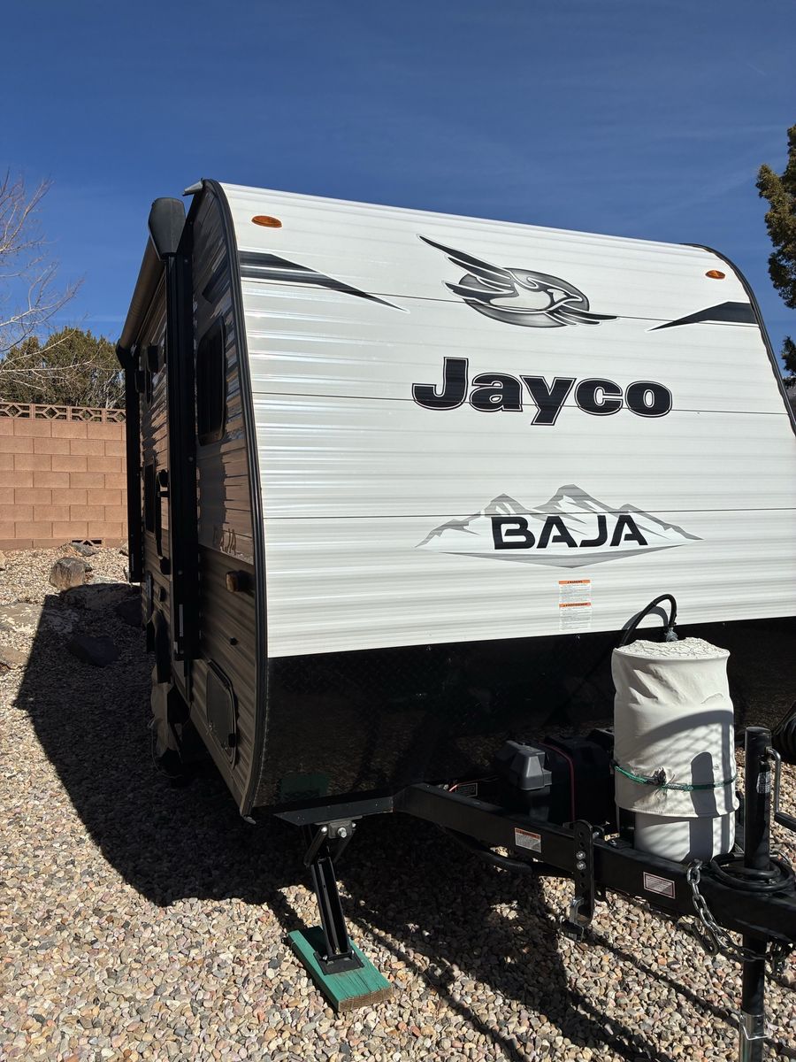 Like new. 154BH BAJA model. Great for off grid camping or traveling. Includes “Equal-I-zer” sway control hitch, towing easy with a 1/2 ton truck or SUV. Dual battery’s and roof top SOLAR panel, 12 volt/propane/shore power fridge, microwave, A/C and propane heater. Sleeps four with bunk beds. Only used two times since purchased new in St George.