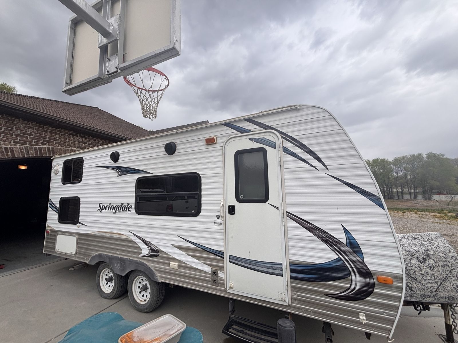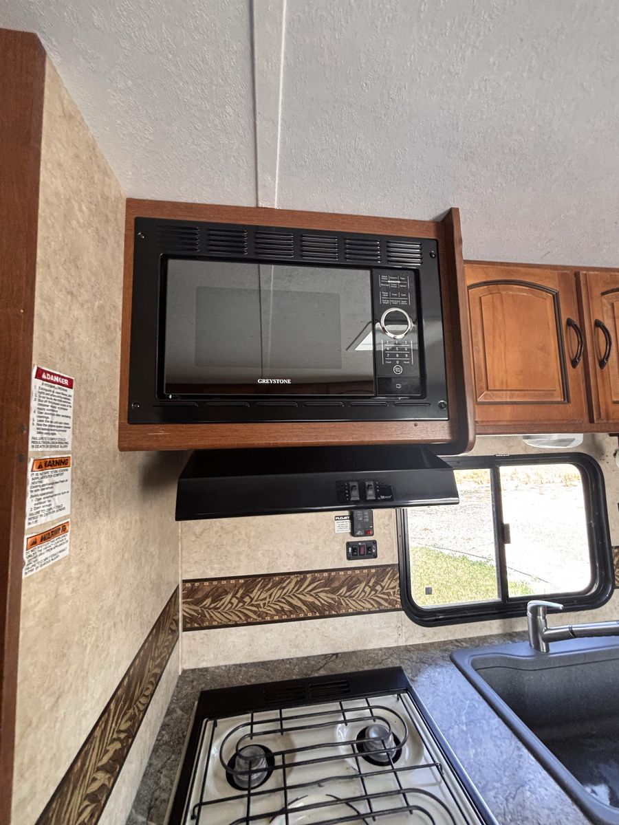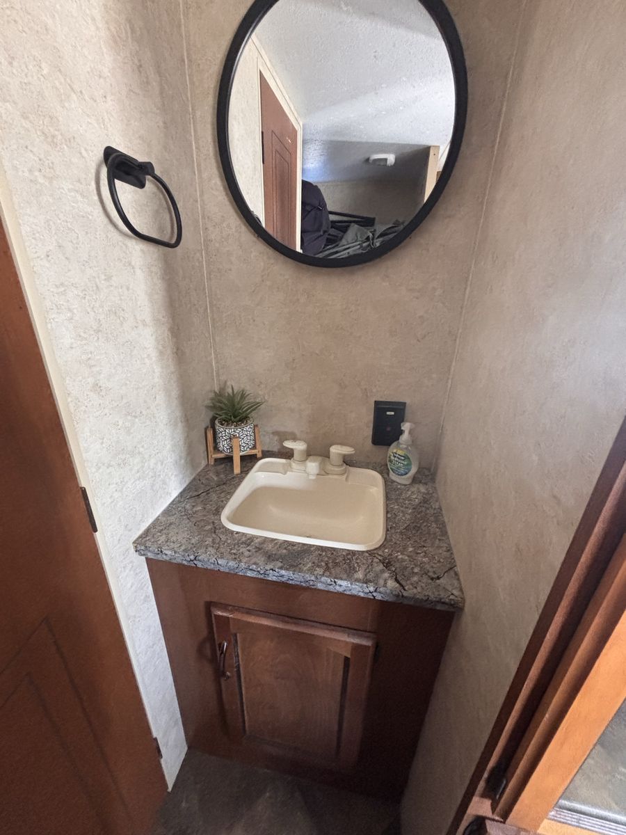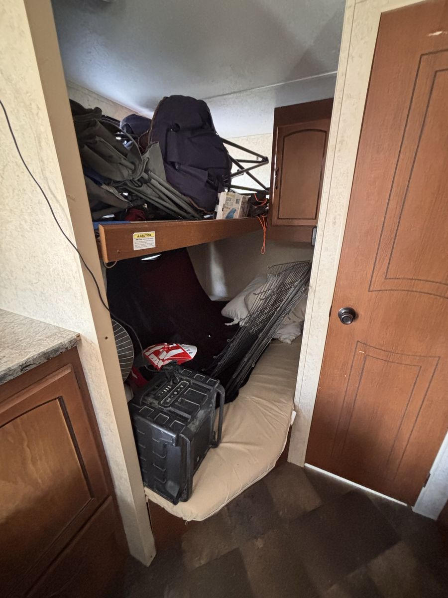 19 foot bumper pole. Everything works great. Previous owner had AC unit removed so does not have AC but all wiring should still be there to put one in. We’ve really loved this trailer just looking for something bigger. No slide out. Half ton towable. New aftermarket fridge and microwave. Tires are about one camping season old. No water damage. Text with any other questions.