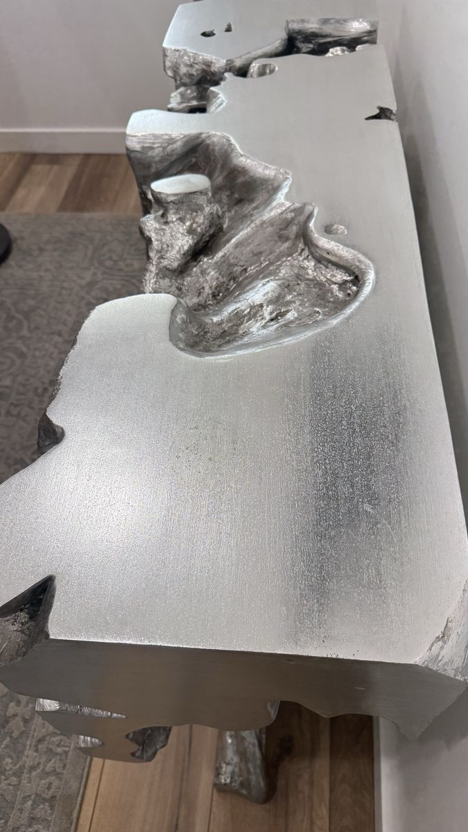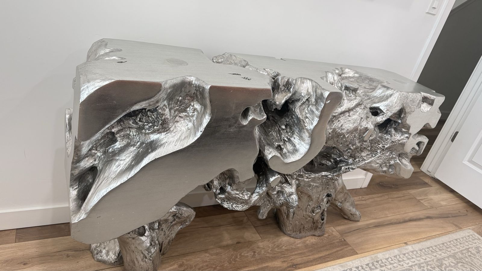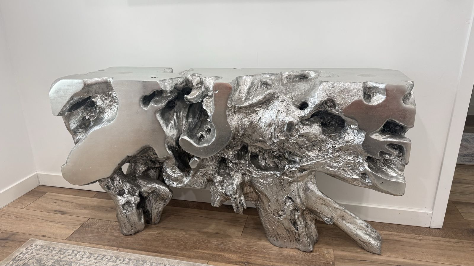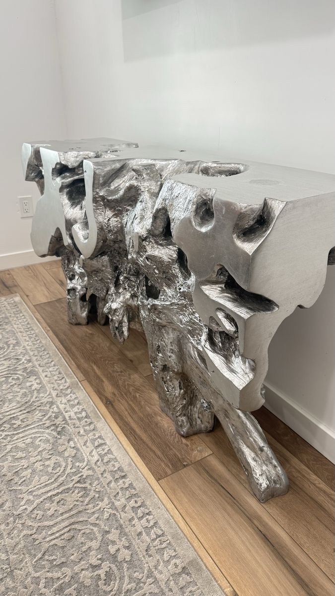 VenmoInvite natural-looking elements into your home with our luminescent Sequoia Console Table. Carefully cast from the roots of an Acacia tree, this console brings sculptural detailing to its surrounding décor. Molded out of resin in a multi-step process, our Sequoia Console Table is finished in silver leafing, giving the table base a subtle luster.