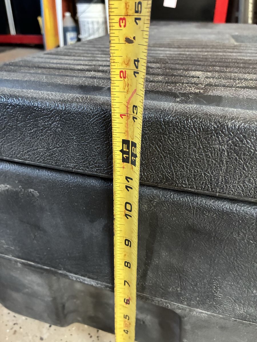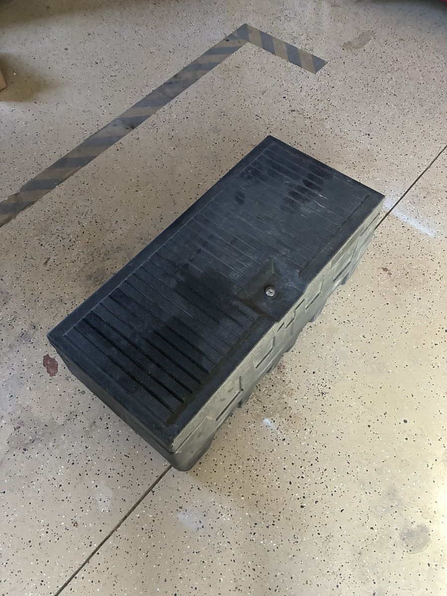 VenmoTool box, camping, no holes, no key for lock. Dimensions: W 32” H 13” D 14”