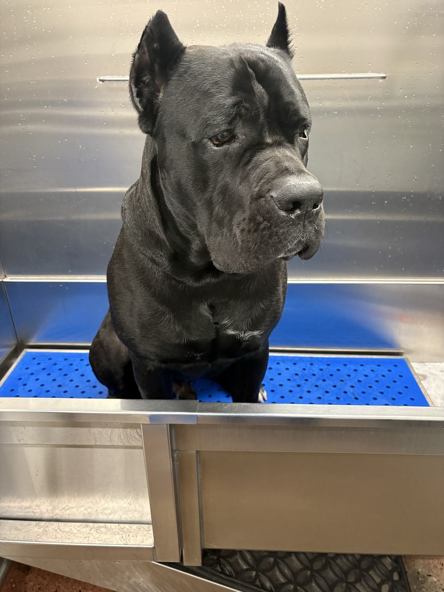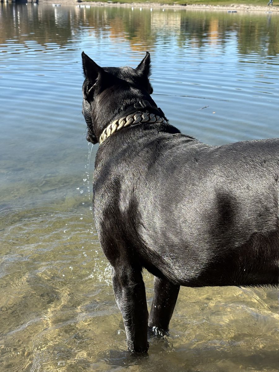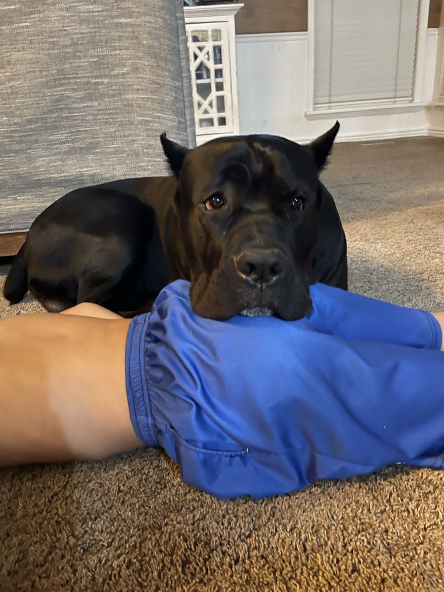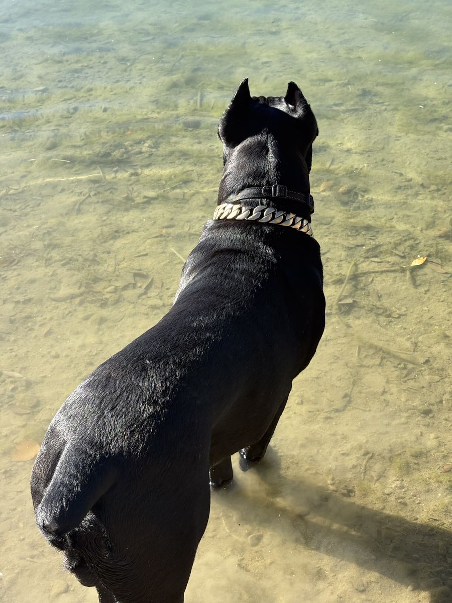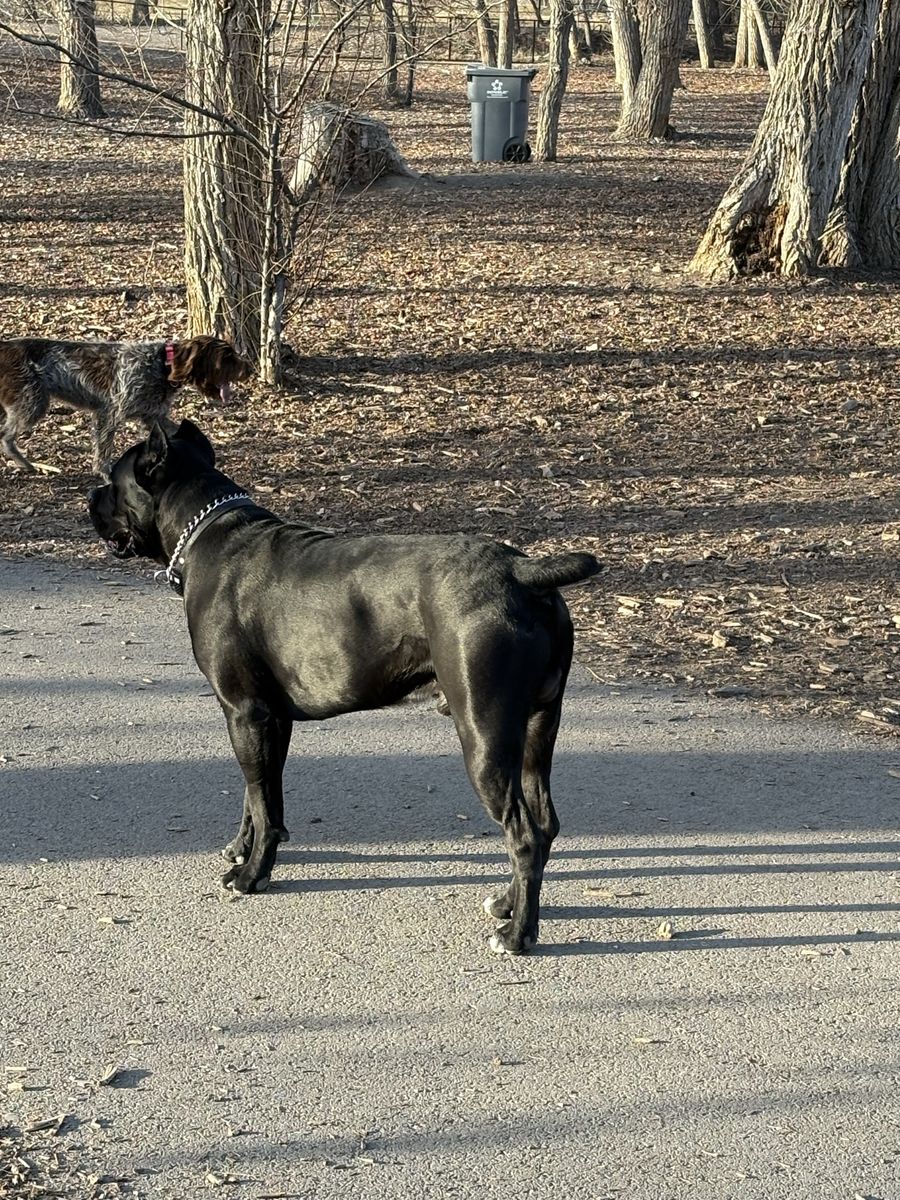 Powerful, well-built black Cane Corso male available for stud. 15 months old and already weighing in at 140 lbs with a strong, athletic frame and excellent presence.
