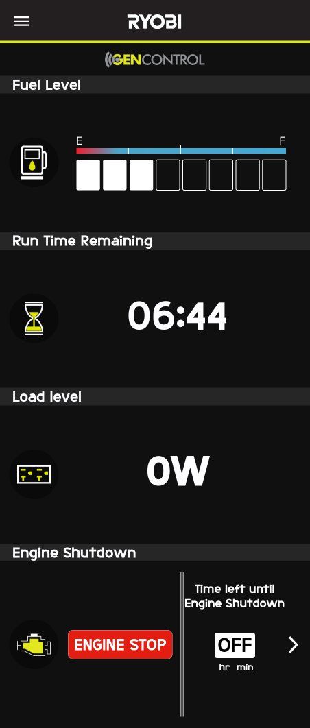 ***RYOBI Bluetooth 2,300 Starting Watt Super Quiet Gasoline ...The Ryobi RYI2300BTA is a 2,300-starting-watt (1,800 running watts) portable inverter generator designed for quiet, clean power for camping or job sites. Key features include Bluetooth connectivity via the GenControl app to monitor load and fuel, on-board LCD display, parallel capability, and a suitcase-style design with wheels.
