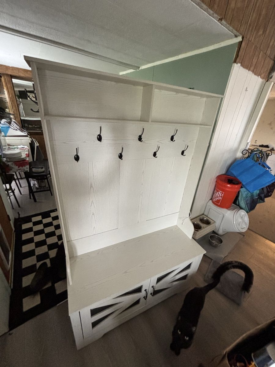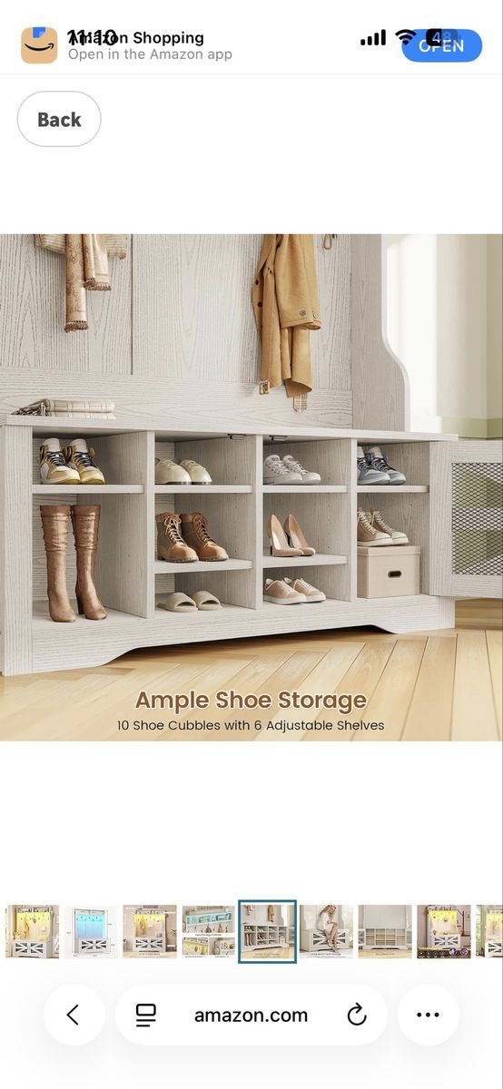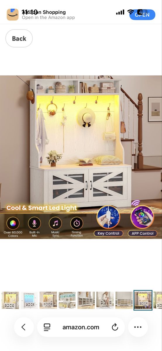 Color Embossed White Item dimensions L x W x H 15.6 x 43.3 x 68.5 inches Brand Itaar Size 43.3" Item Weight 80 Pounds Style Farmhouse Engineered Wood 5-in-1 Design5-in-1 design combines coat rack, shoe bench, shoe rack, 3 top storage cubbies and top shelf for entryway organization. You can sit on the entryway bench to change your shoes and then put hang your coat on the rack. With this versatile piece of furniture, you can fulfill a variety of storage needs without multiple items. Ample Storage SpaceThis hall tree has 9 double hooks for hanging coats, bags, scarves, etc. This storage bench has 10 shoe cabinet which can be adjustable to different heights to put your sports shoes or boots. The top storage provides enough storage room to can place your books or other decorations. Wide UsingWhether your home style is traditional or modern, this entryway bench seamlessly blends in and enhances the aesthetic value of your room. It can be used in bedrooms, living rooms, entrances, corridors, entryways, halls, foyer, hallway, mudroom, and other occasions to light up your home. Cool & Smart Led LightThe hall tree comes with RGB LED light , remote control via APP, Over 60000 colors and 29 flashing modes for your to choose. Led lights with music sync function, built-in sensitivity adjustable mic, led light color will change with the rhythm of the sound and music.