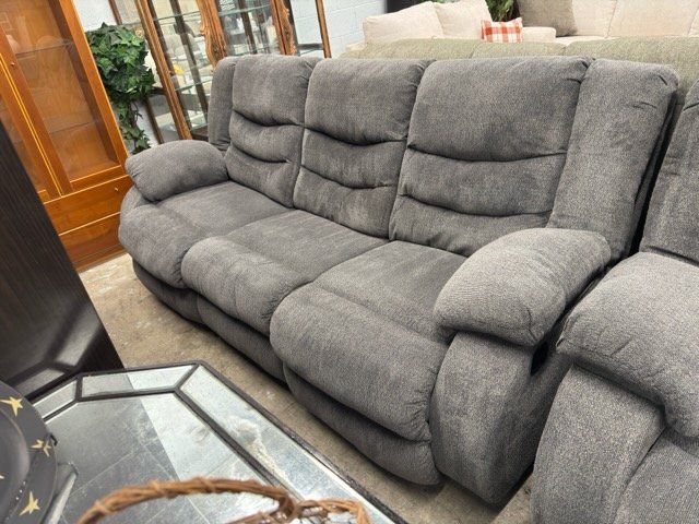 Nice 2 piece recliner sofa set. Contemporary style and neutral gray color, this piece will easily blend with any color palette already in your home. Includes: One (1) Sofa and One (1) Loveseat. Manual recliners on each end. Very comfortable and in great condition! Located in Layton. Free Curbside Delivery within 15miles.