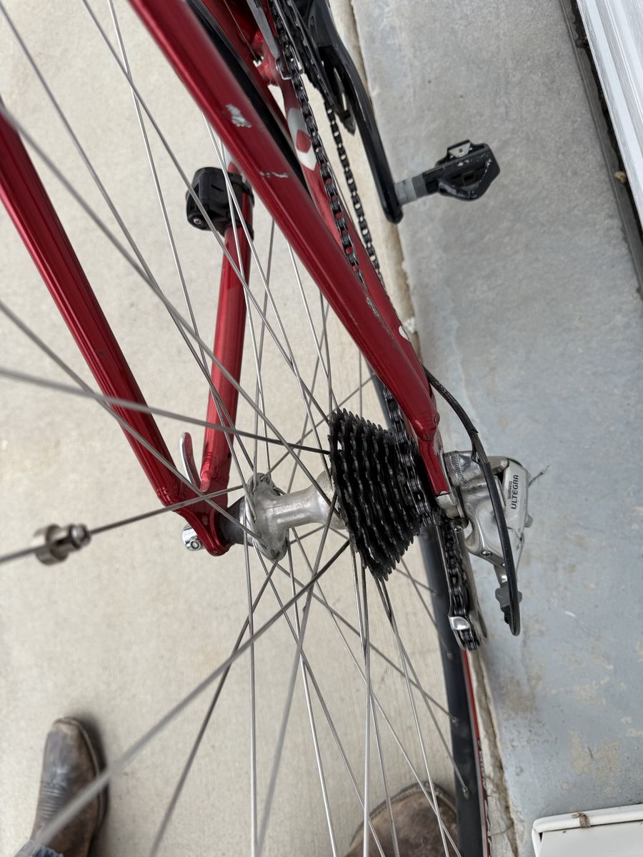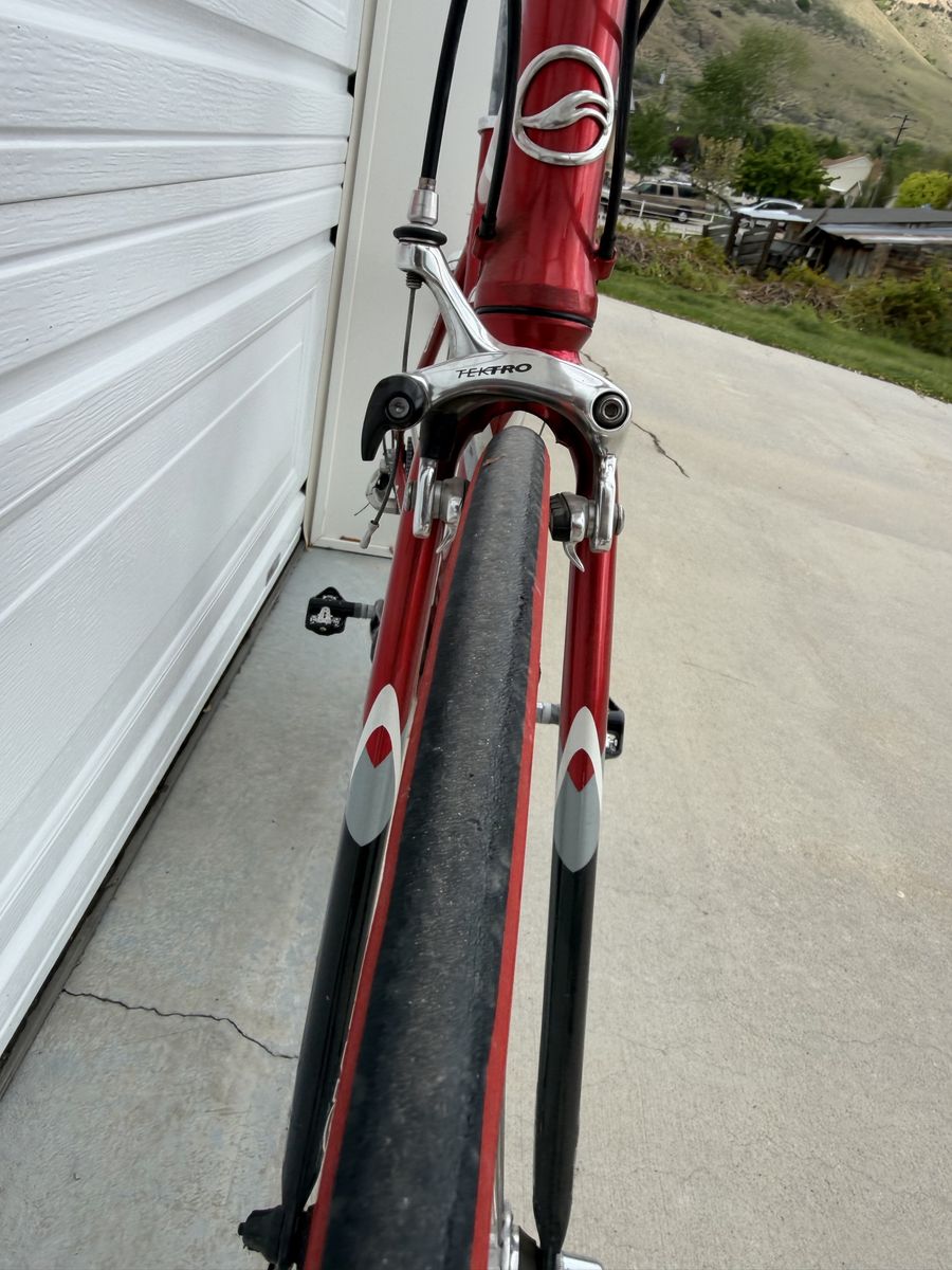 This is an amazing road bike. Recently rewrapped the handlebars. it comes with the clip less pedal, the rear wheel for the trainer that’s in it right now, and a rear wheel for the road Shifts and ride Amazing. It has both front and rear shifting. Located in Brigham city Utah Cash only