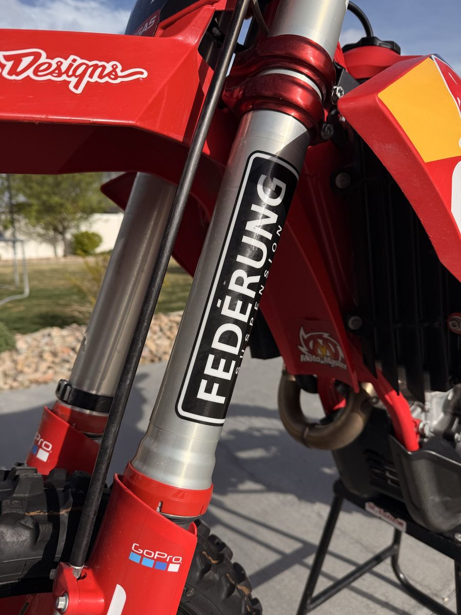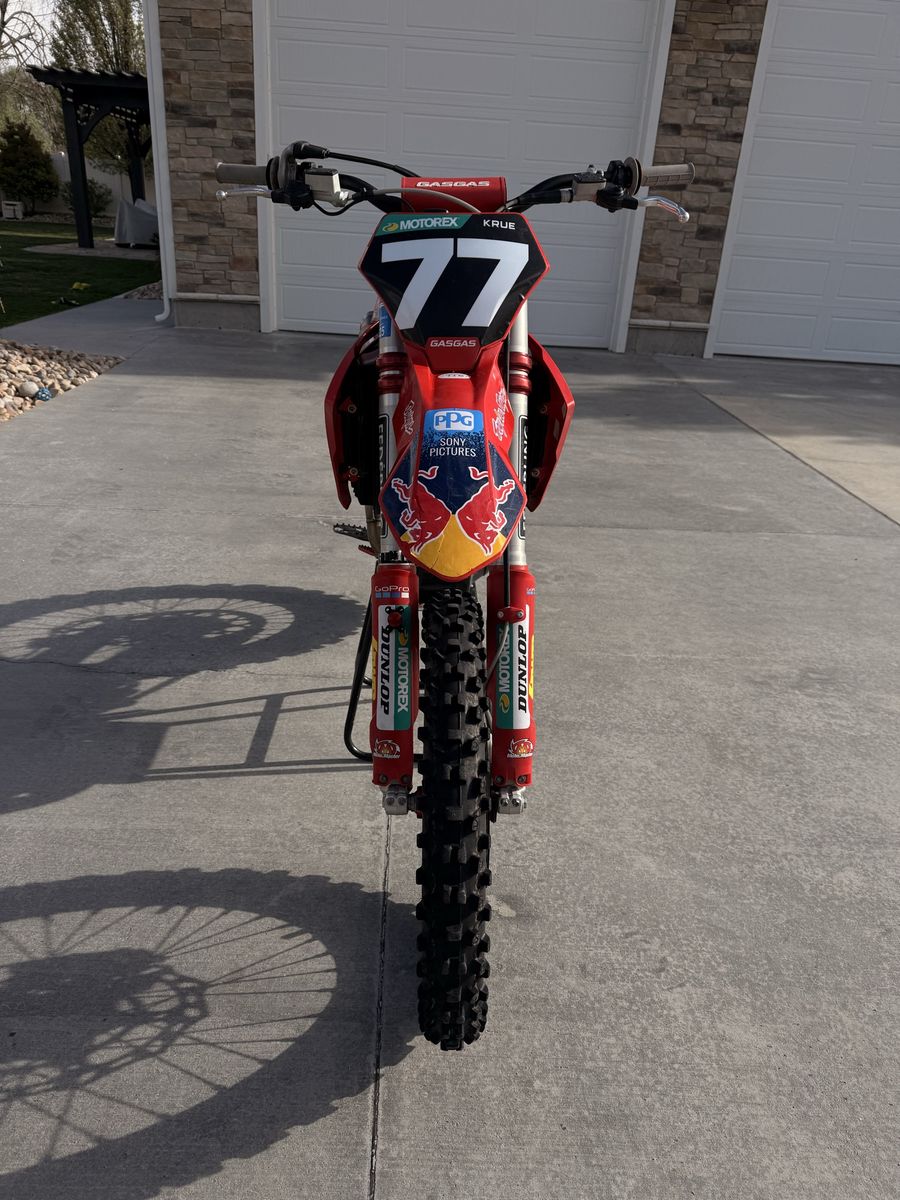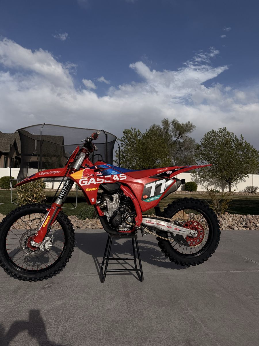 I’m selling my 2024 GasGas MC250F factory edition. It comes with aftermarket Federung suspension, new front and rear sprockets, two sets of the factory edition plastic kits, and two holeshot devices. The bike has never been raced and has been well-maintained. I change the oil every 3 hours and grease everything on the bike every 5 hours.